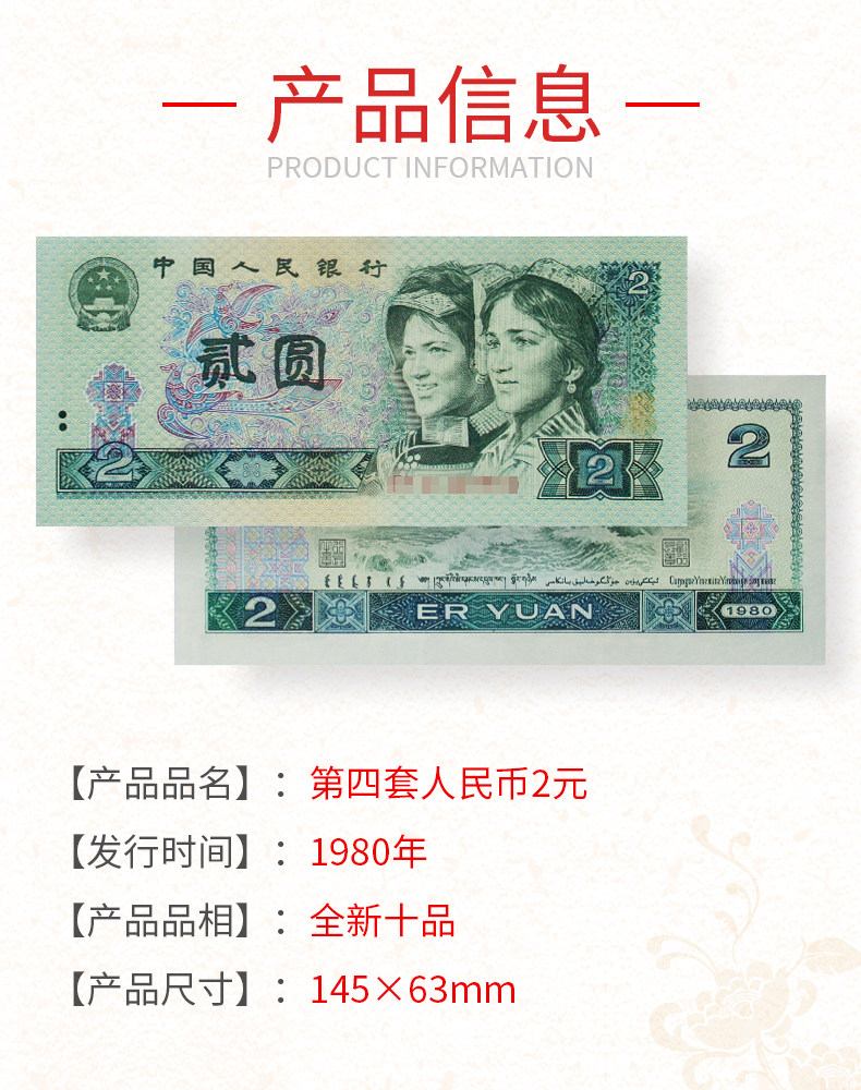 Четвертый набор юаней 2 юаней в 1980 году, Новые монеты с коллекцией Board, четвертое издание 802 два банкнота юаня