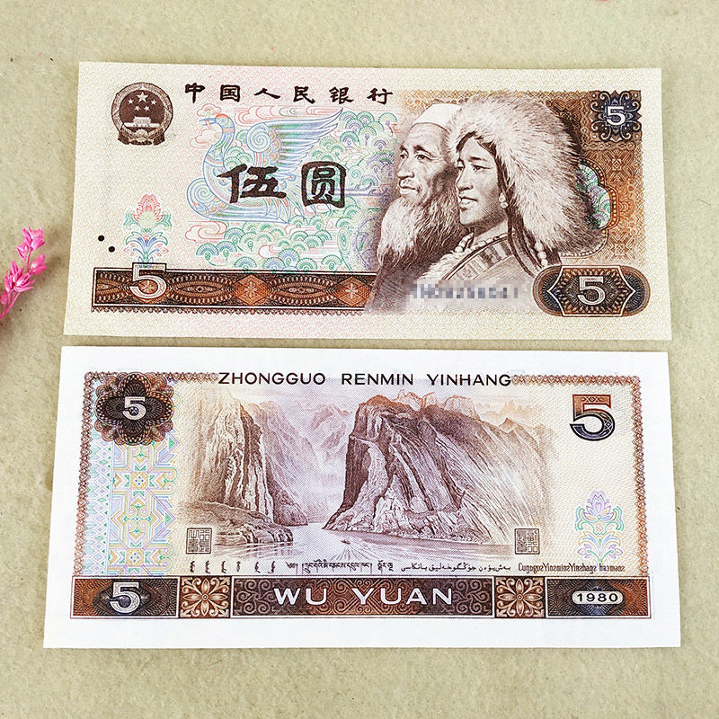 В 1980 году целый нож Вуюаня Всего 100 кусочков банкнот пять юаней 805 Вуюань RMB Banknote Collection