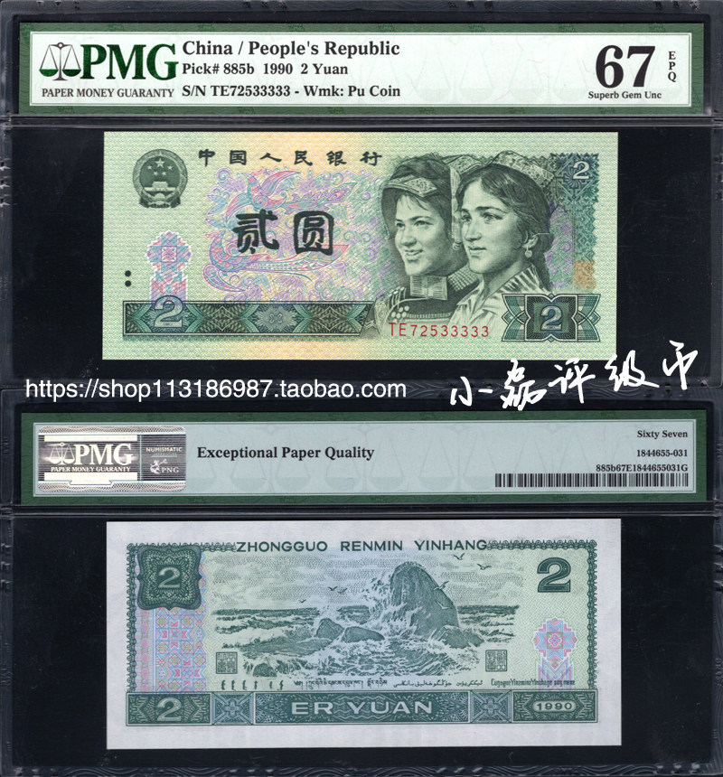 PMG Rating 67 очков 67 очков, четвертый набор из RMB 1990, 2 Юань, 4 -я версия 2 Юань, 4 -я версия 902 Тигр.