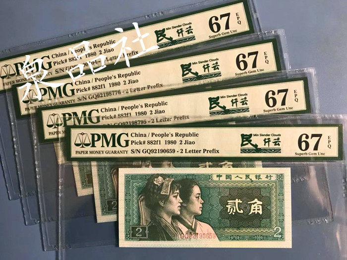 Erjiao 8002 Minxianyun флуоресцентная монета PMG67-точка Рейтинг монеты банкноты четвертый набор 1980 года 2Jiao 2Jiao