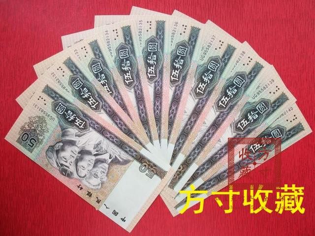 Четвертый набор RMB 1990 Edition 50 Yuan 50 Yuan Peerless Standard 10 последовательный знак 10 9050