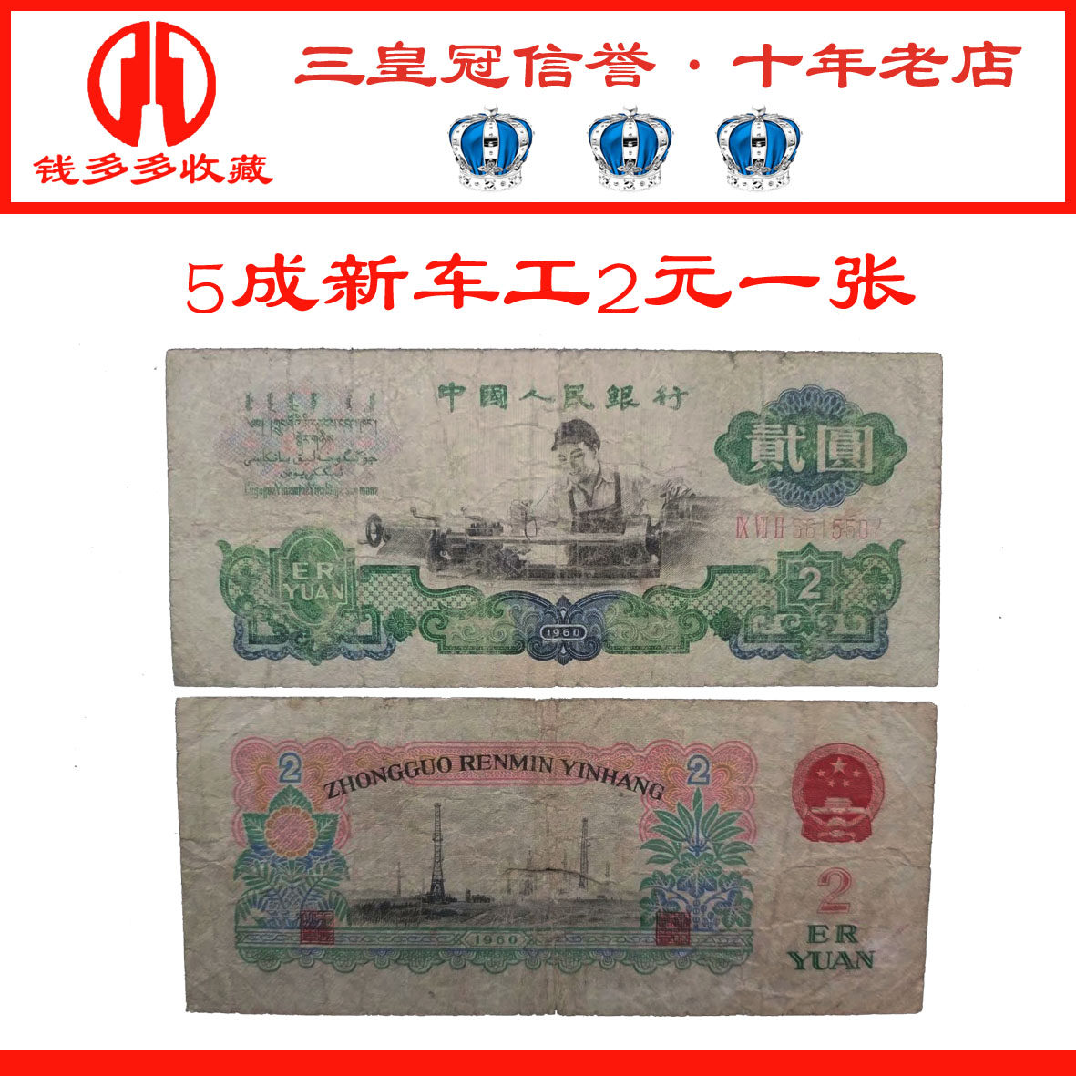 Оригинальный билет Old Products 3 -е издание, третья версия автомобильного работника RMB 2 Yuan Two -uan Two -Yuan Banknotes 1960 Five -Star Watermark