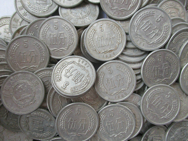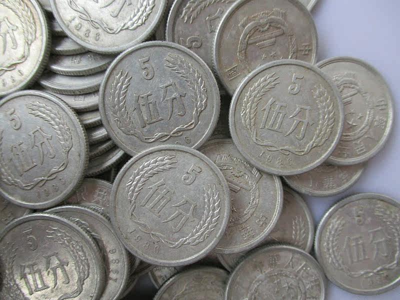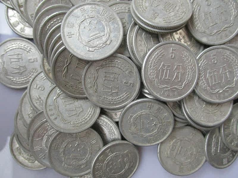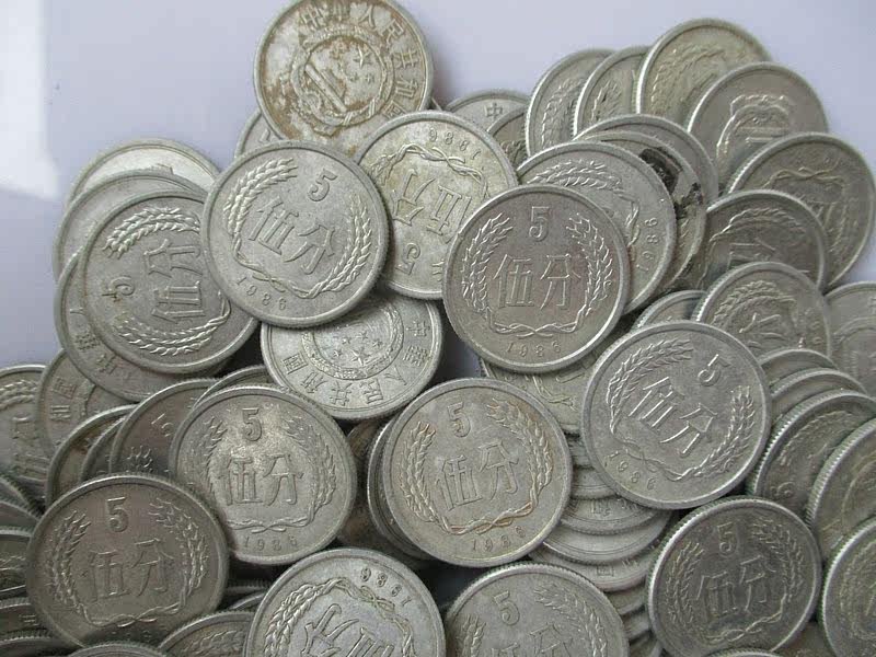 В 1986 году 5 баллов жесткие монеты 1986 5 баллов 865 монет разделены на пять очков денег алюминиевая и алюминиевая монета.