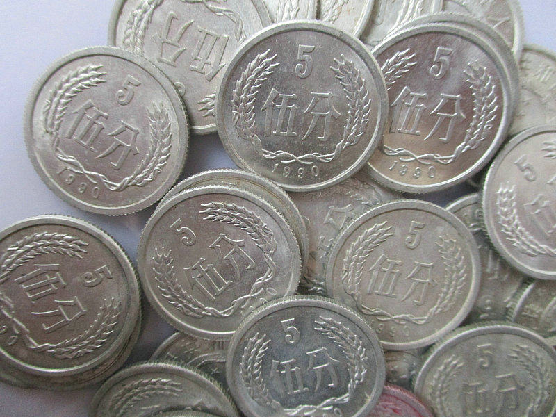 В 1990 году 5 очков жесткой валюты 1990 905 монет, пять очков денег, алюминий, алюминий, монета, единственная цена