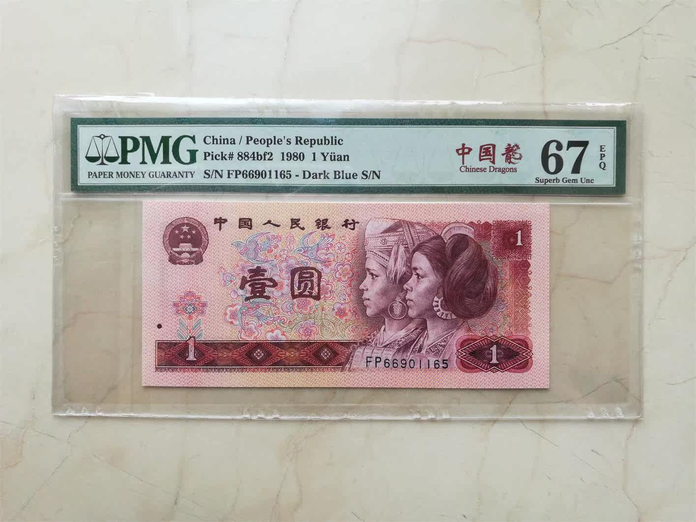 Четвертый набор RMB PMG 67 очков один юань 1980 китайский дракон -один юань