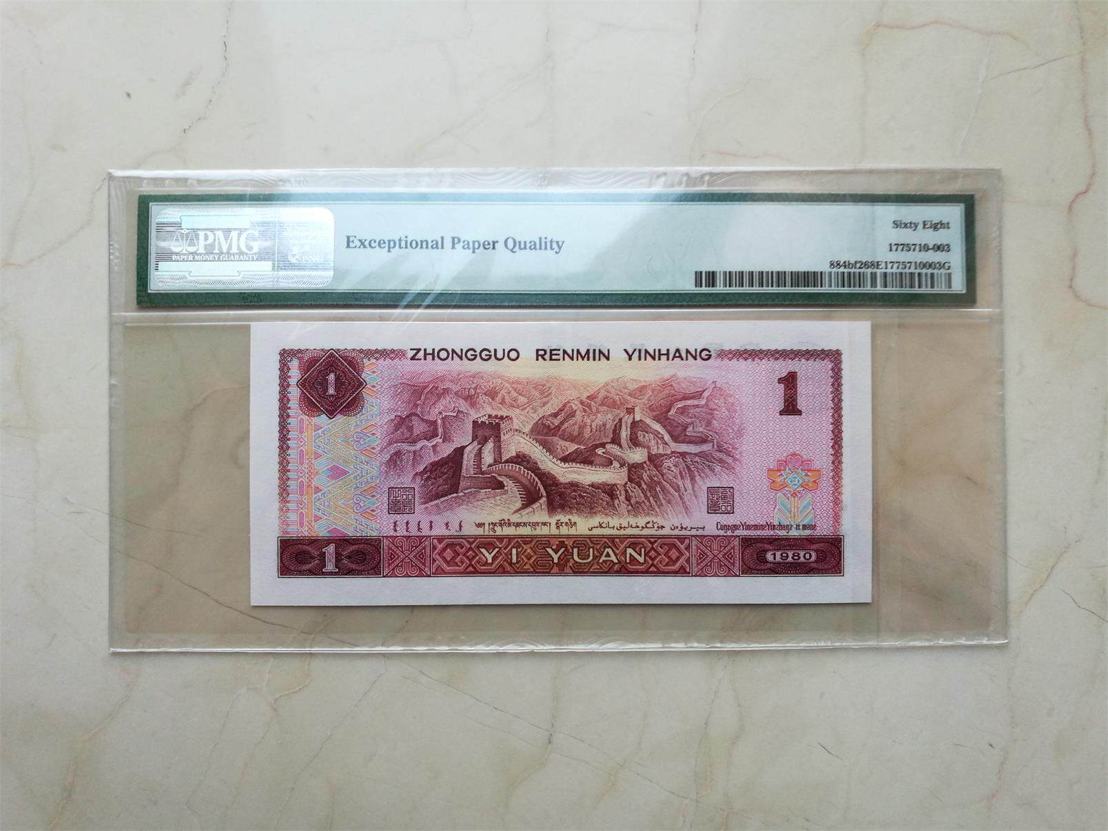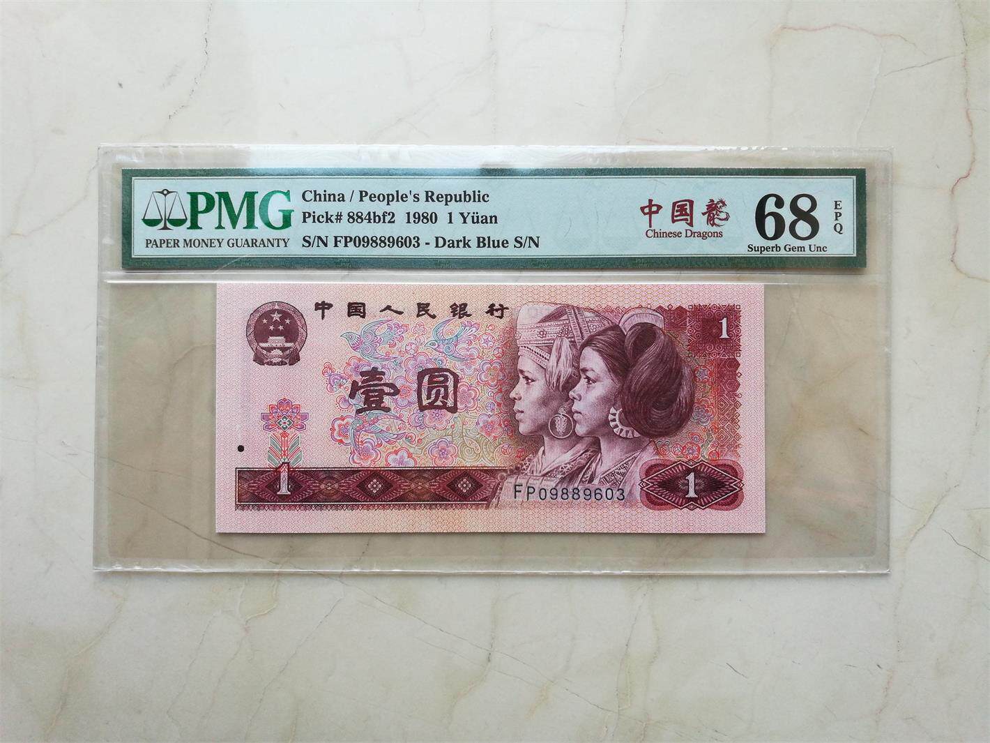 Один юань 801 Китайский дракон -Дракон Красный Призрак PMG68 Оценка оценки валюты, четвертый набор юаней 1 юаней в 1980 году
