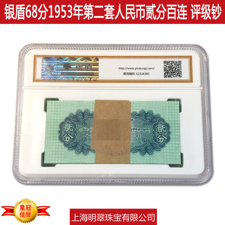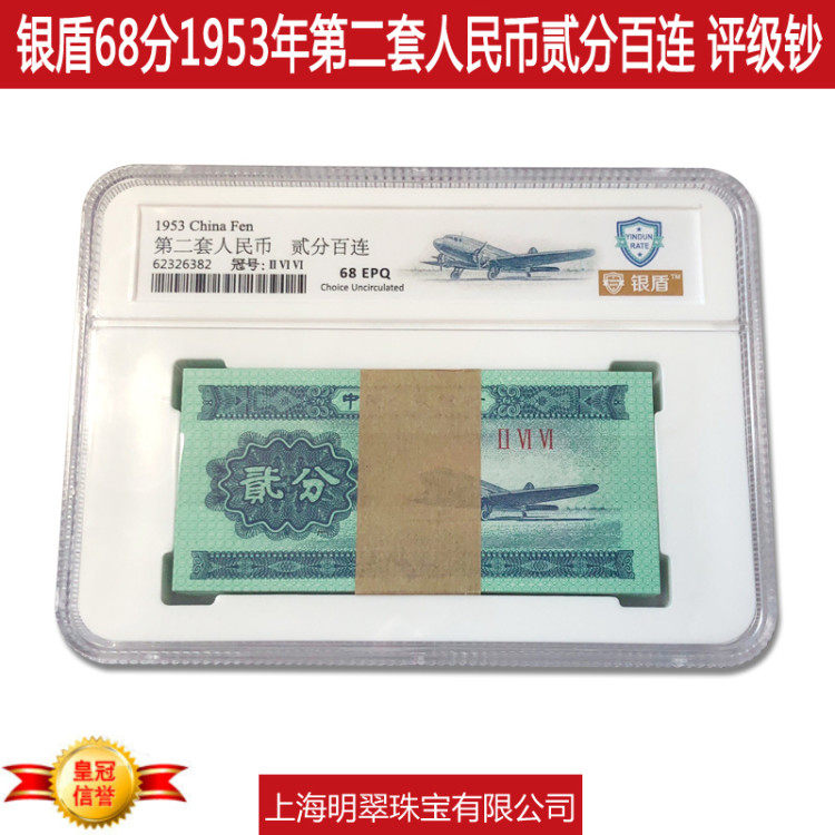 Silver Shield MS68 очки 1953 баллы 2 балла банкнот New Bai Lian News Rantion Banknote Второй набор юаней