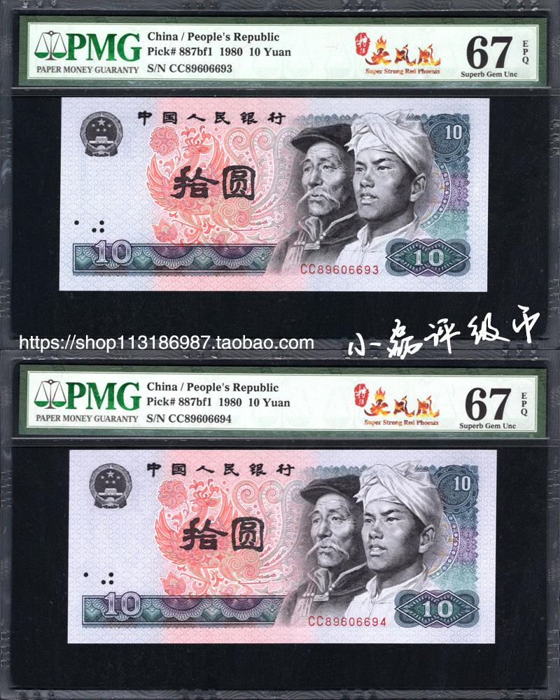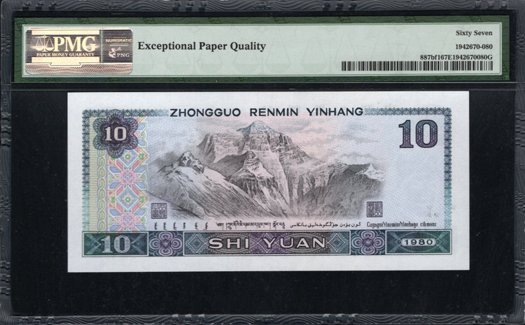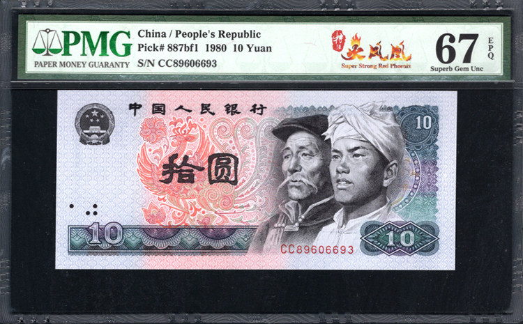 PMG Номинальная валюта 67 очков, четвертый набор юаней 1980 года, 10 Yuan 4 версия 8010 Специальный сильный флуоресцентный пожарный феникс