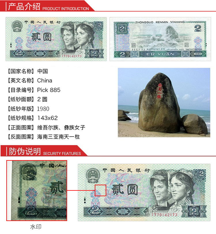 [Полный разборка ножа новый продукт] Четвертый набор RMB 2 Yuan Banknote 1980 802 Стандартные десять последовательных чисел