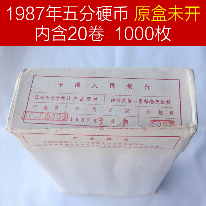 В 1987 году оригинальная коробка из 5 центов банк монет 1000 китайских монет Скульптура Китая Монеты