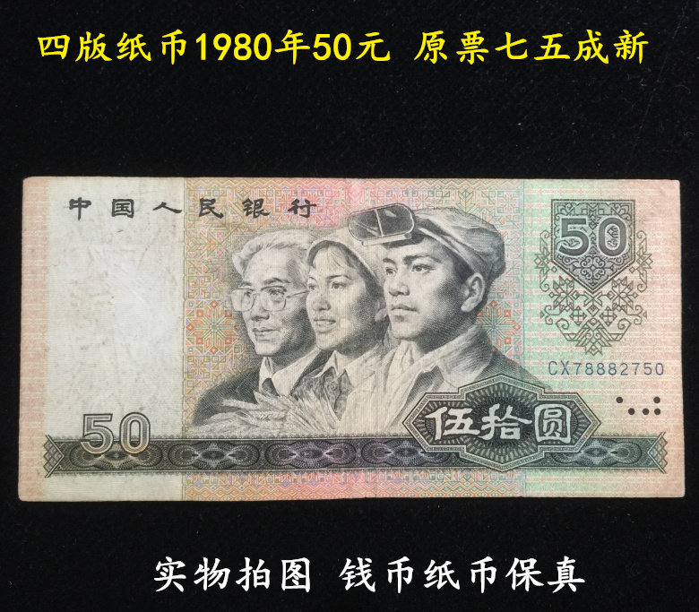 Четвертый набор 4 -го издания RMB 50 в 1980 году. Оригинальный билет 7,5 пункта настоящие фотографии бумажные валюты реальные монеты 8050