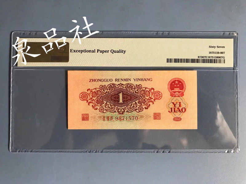 Jubei Corner PMG67 Оценка оценки валюта третий набор RMB One Corner