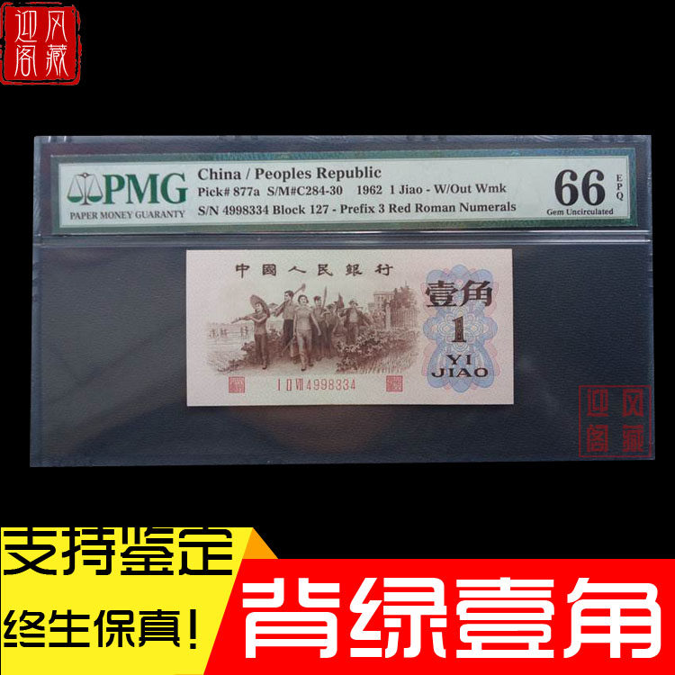 Третий набор монет RMB Banknote 1 угловой зеленый зеленый зеленый, без зеленого углового водяного знака, оценок PMG Валюта реальное число