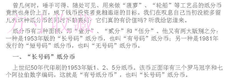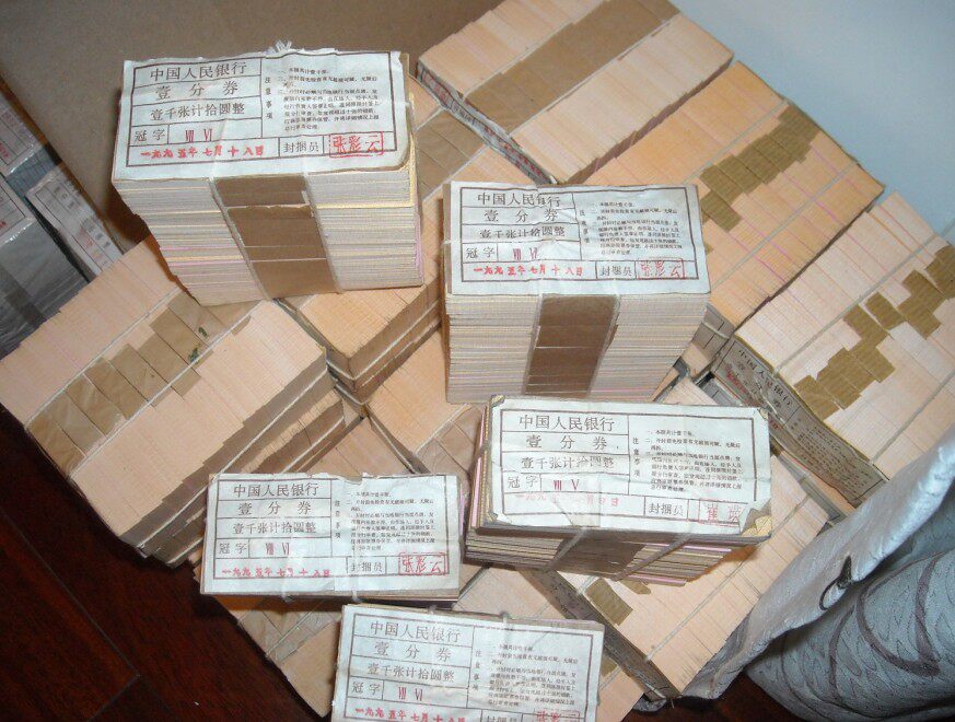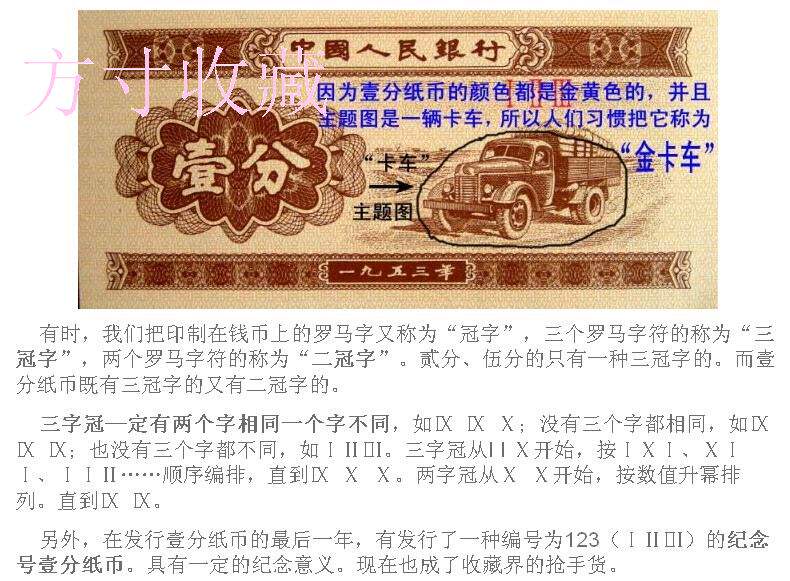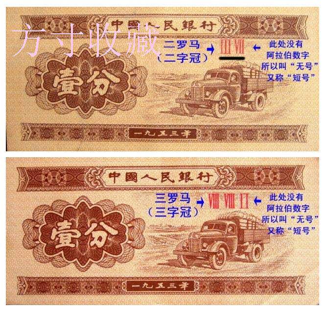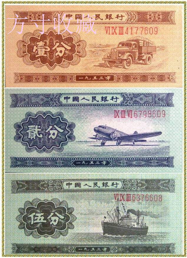Второй комплект номиналом 1 цент юаня (образец - золотой грузовик), старая проволочная упаковка, выпуск 1953 года.