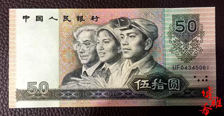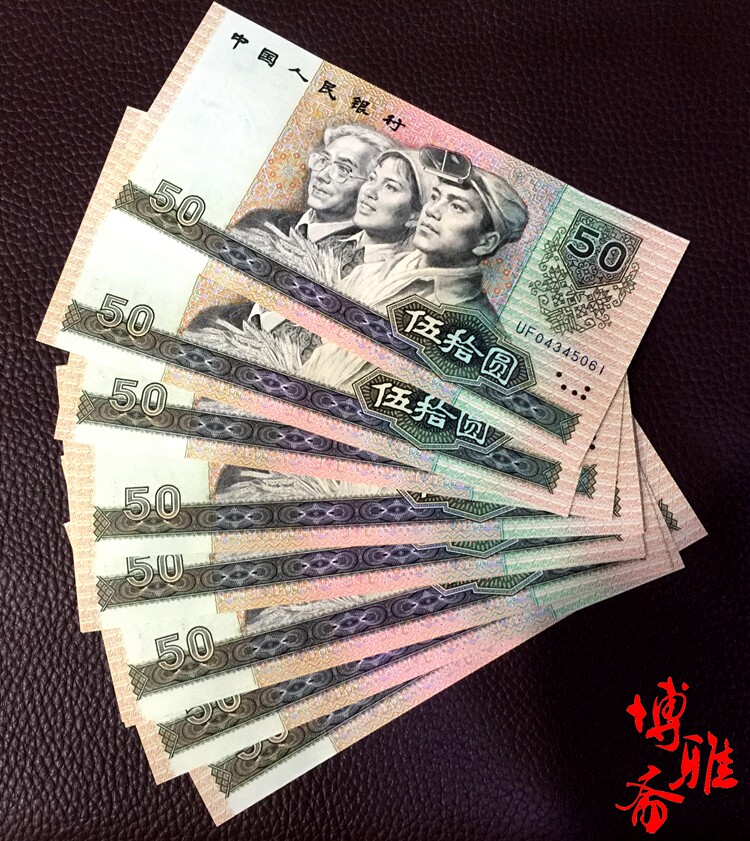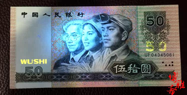 Четвертый набор из RMB Fifty Yuan 9050, четвертый набор RMB, Wu Shiyuan 90 -Year Edition 50 Yuan Larval Peer