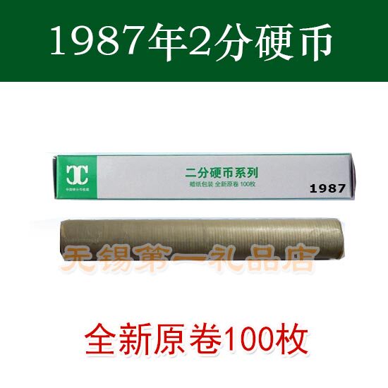 В 1987 году новый банк нового банка из 2 -точечной монеты 87 лет двухметральных монет, весь рулон из 100 штук с упаковочной коробкой