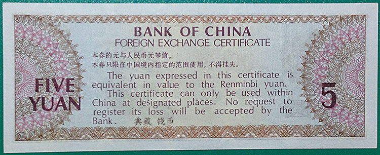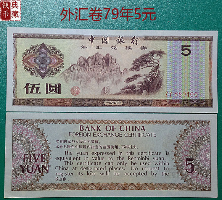 Купон на иностранные валюты пять юаней 1979 Купон на иностранные валюты 5 Юань -валютный том 5 Юань 5 Юань из Народного банка Китая Форекс Ранг 5 Юань