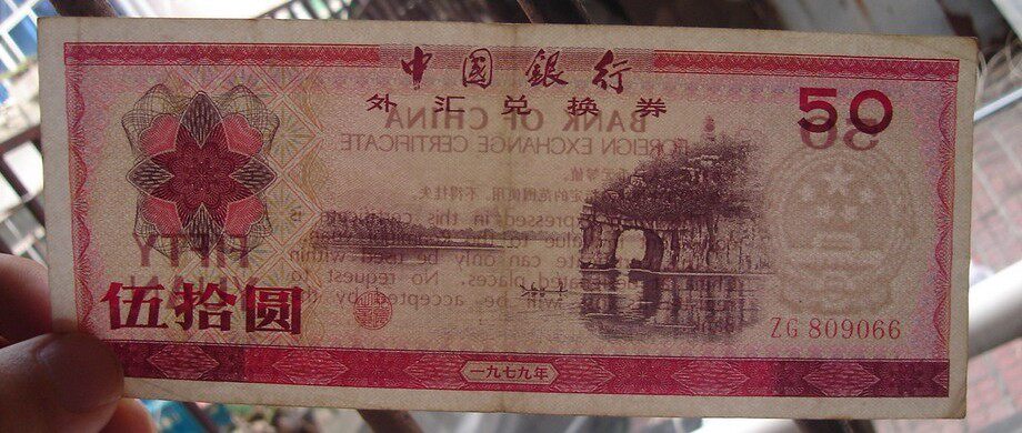 Ваучер на иностранные валюты 1979 года Wu Shiyuan 50 Yuan № 809066