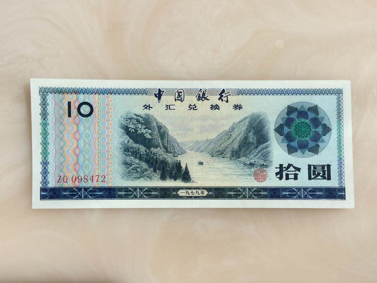 В 1979 году ваучер на иностранные валюты Банка Китая 10 Юань мариновал 10 юаней девять -пин ZQ Crown 098472 True