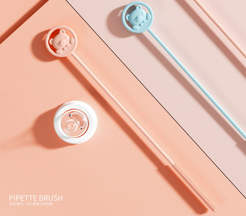 Силиконовая длинная щеточка, детское моющее средство для бутылочек, щетка для младенца, трубочка, с медвежатами