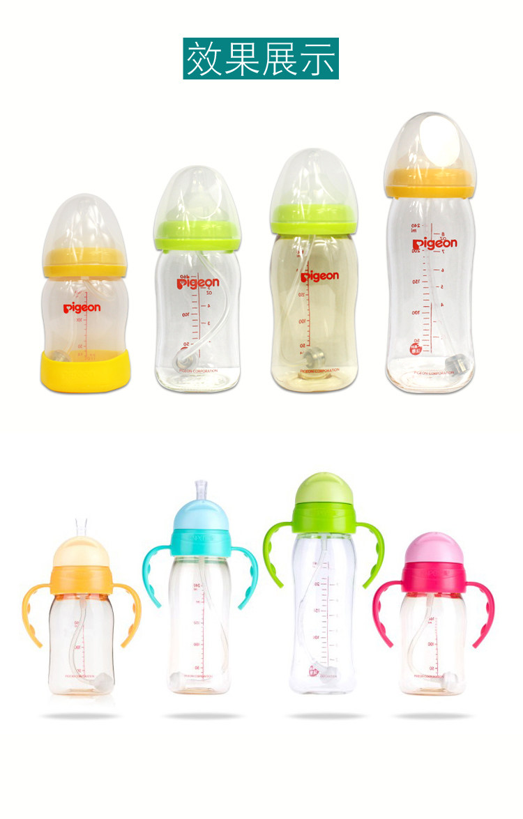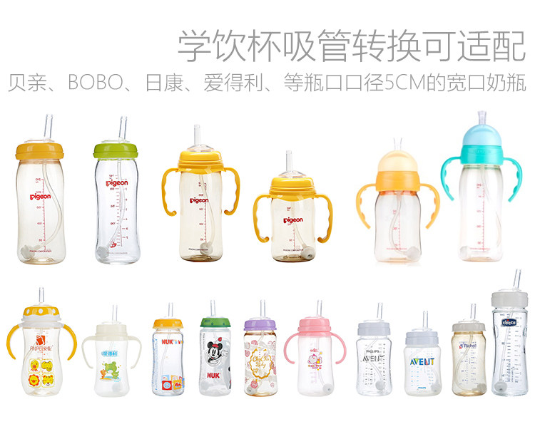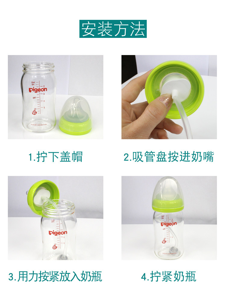 Pigeon, бутылочка для кормления, аксессуары, ручка, трубочка со стаканом, 2, широкое горлышко, защита при падении