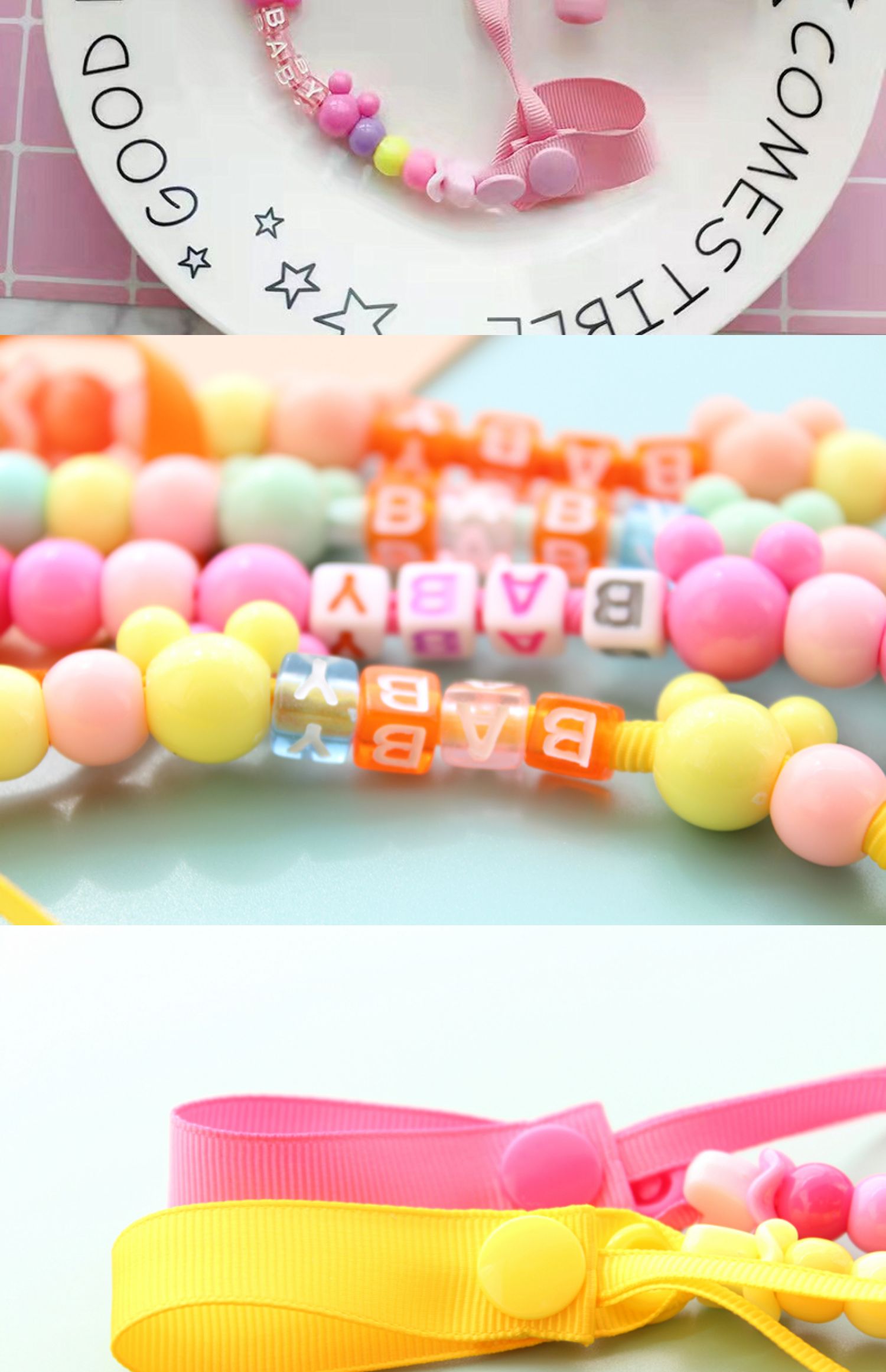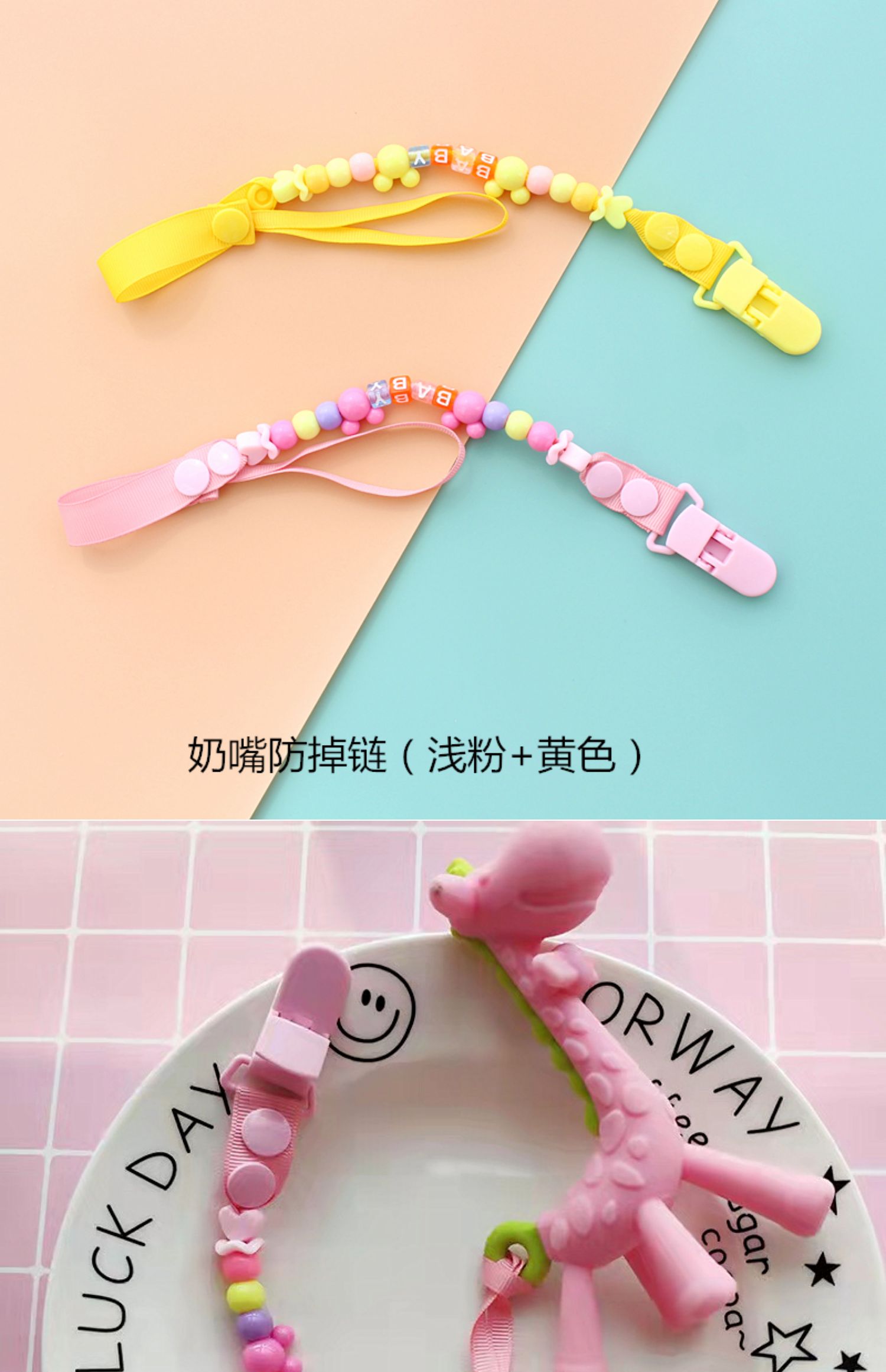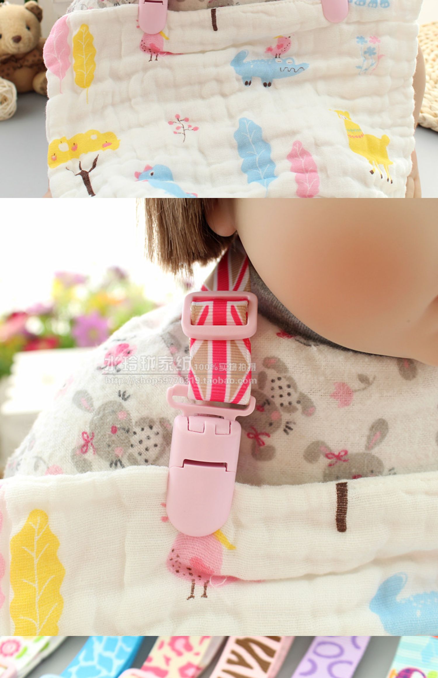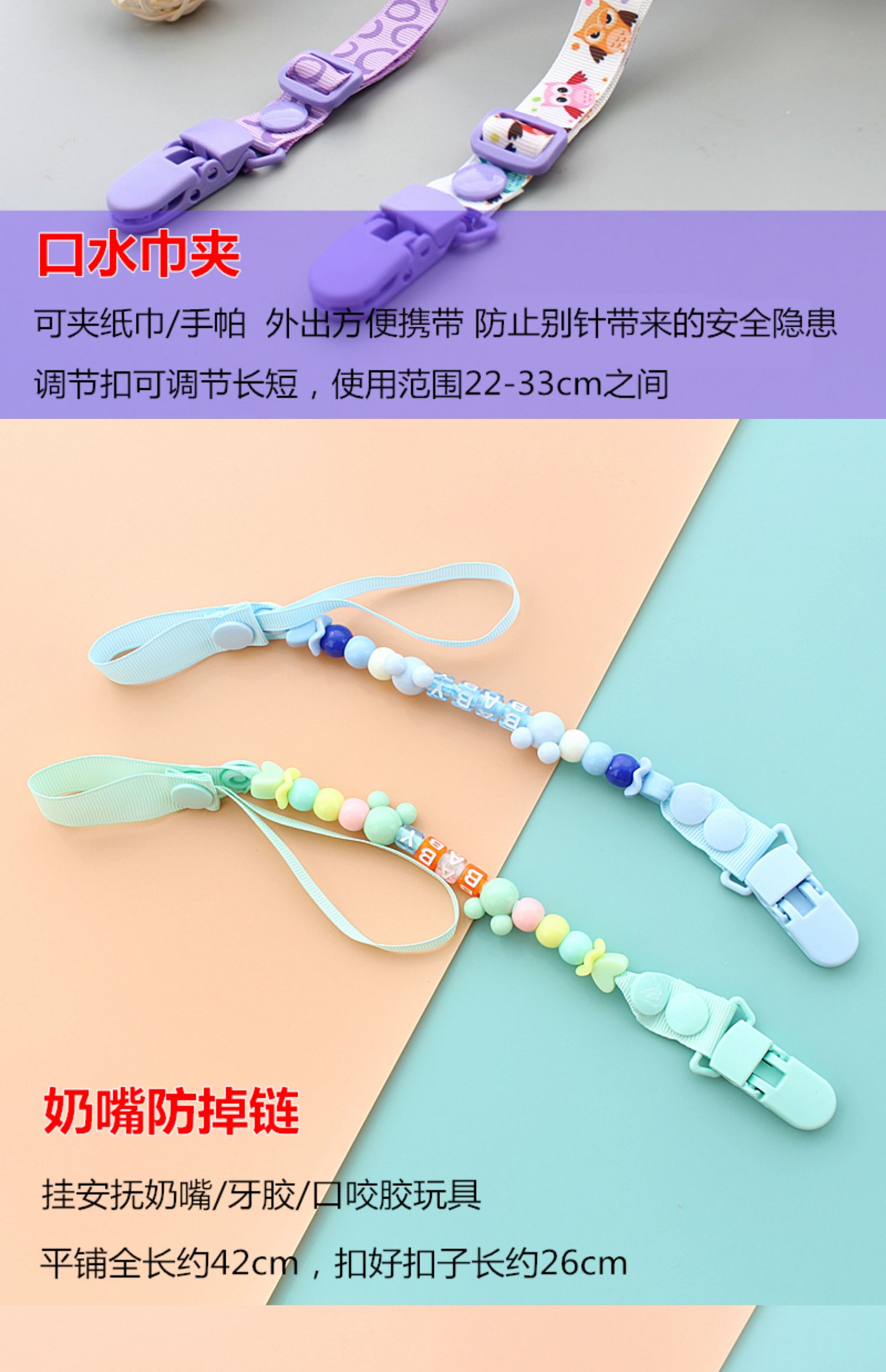 Детский слюнявчик, бумажные салфетки, детская соска, шнурок-держатель, прорезыватель