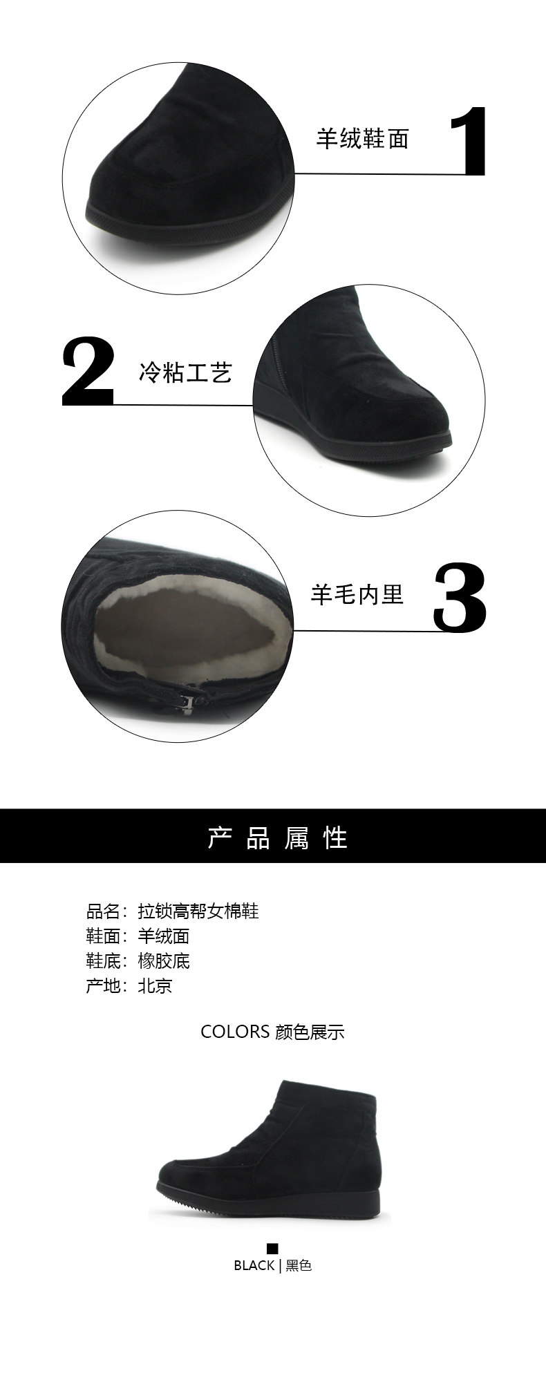 内联升 Хлопковая обувь женская ткань, кашемировые полуобучения, замок, теплые, удобные повседневные хлопчатобумажные туфли 4191c