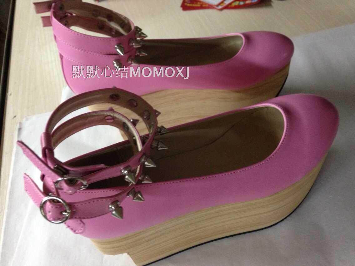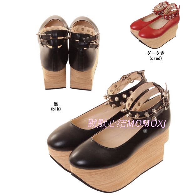 Симпатичные японские туфли в стиле Лолита в готическом стиле с заклепками на твердой подошве под дерево на толстом каблуке в стиле Лолита в стиле панк