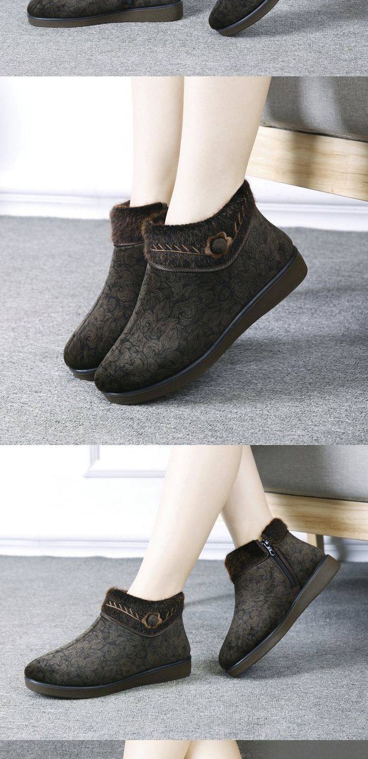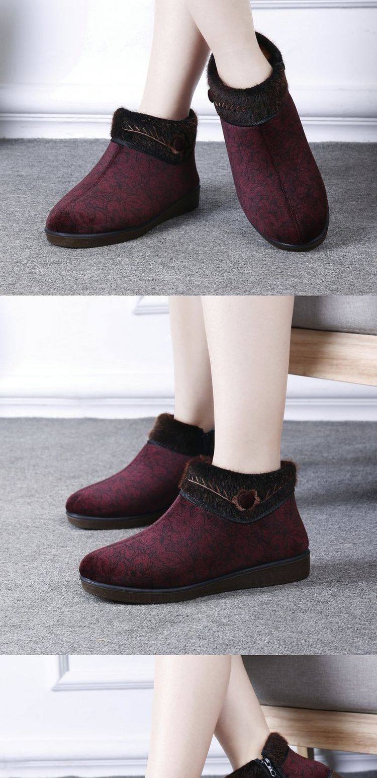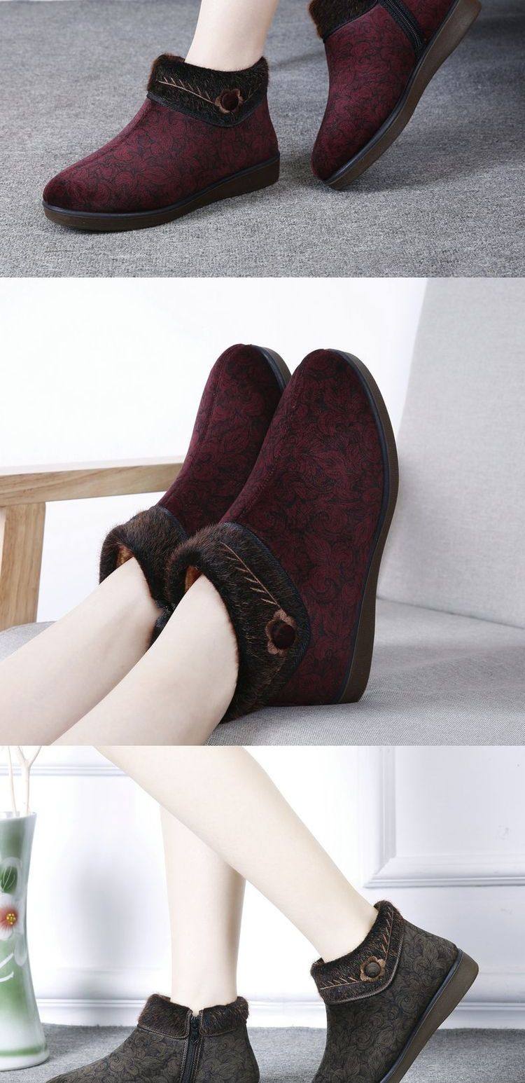 福顺缘 Зимние высокие утепленные слипоны, туфли для матери, свободный крой, для среднего возраста