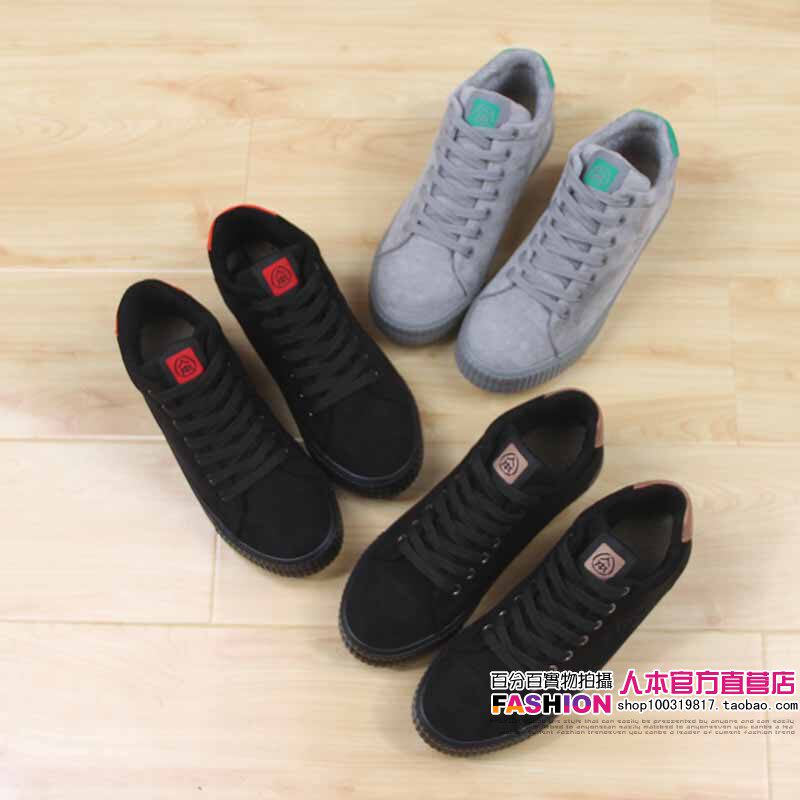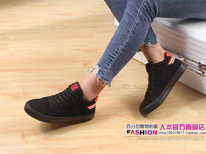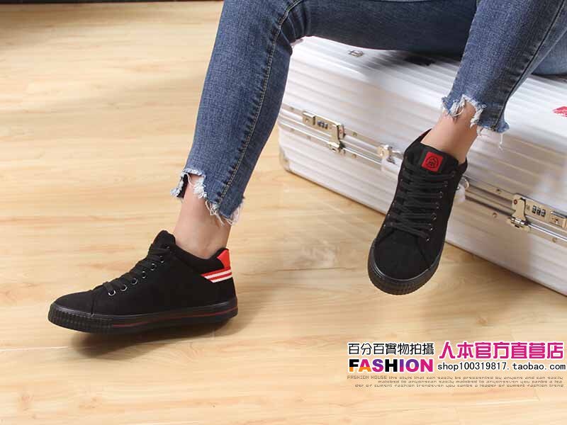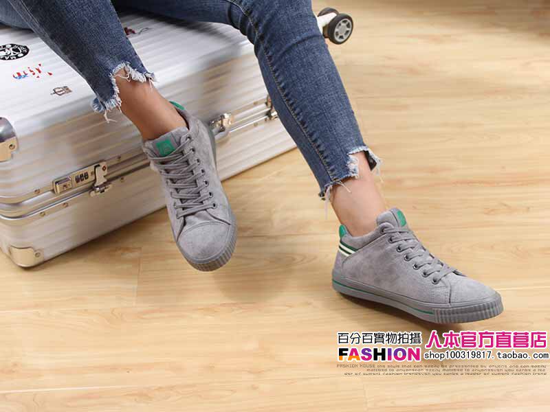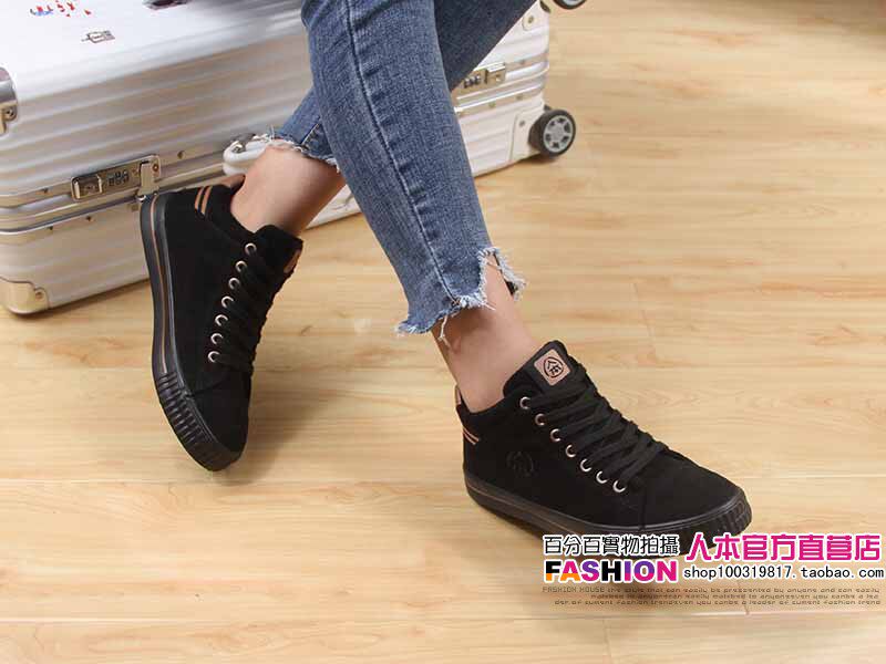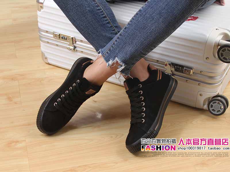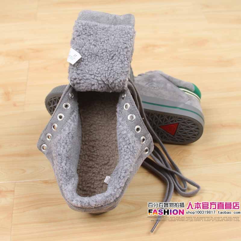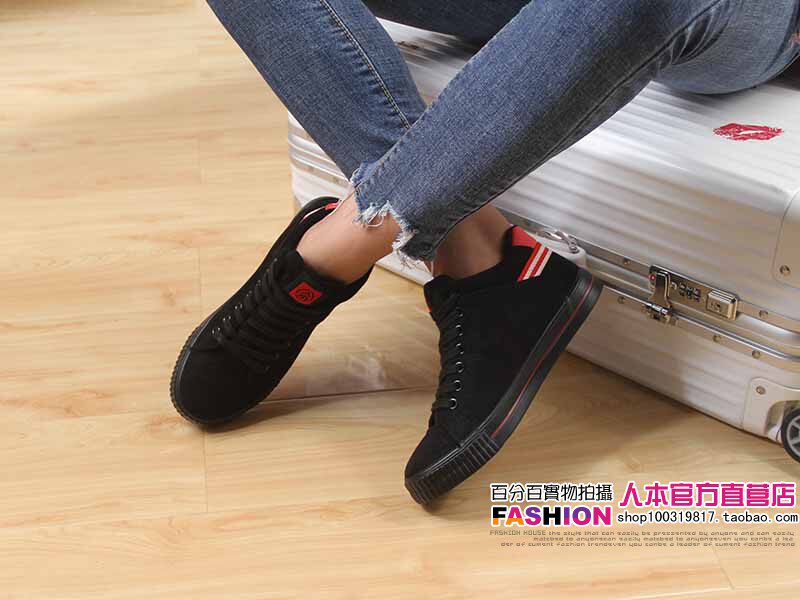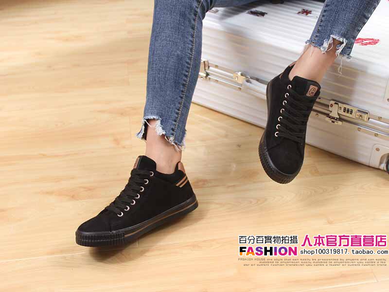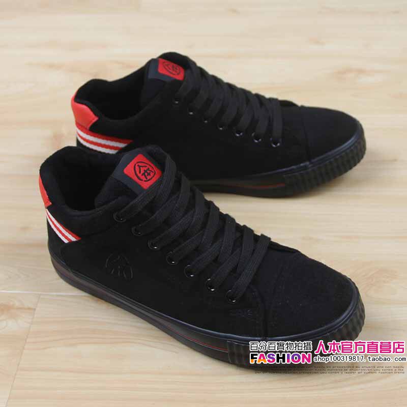 人本 Флисовые высокие ботинки, зимние универсальные кроссовки, туфли, в корейском стиле