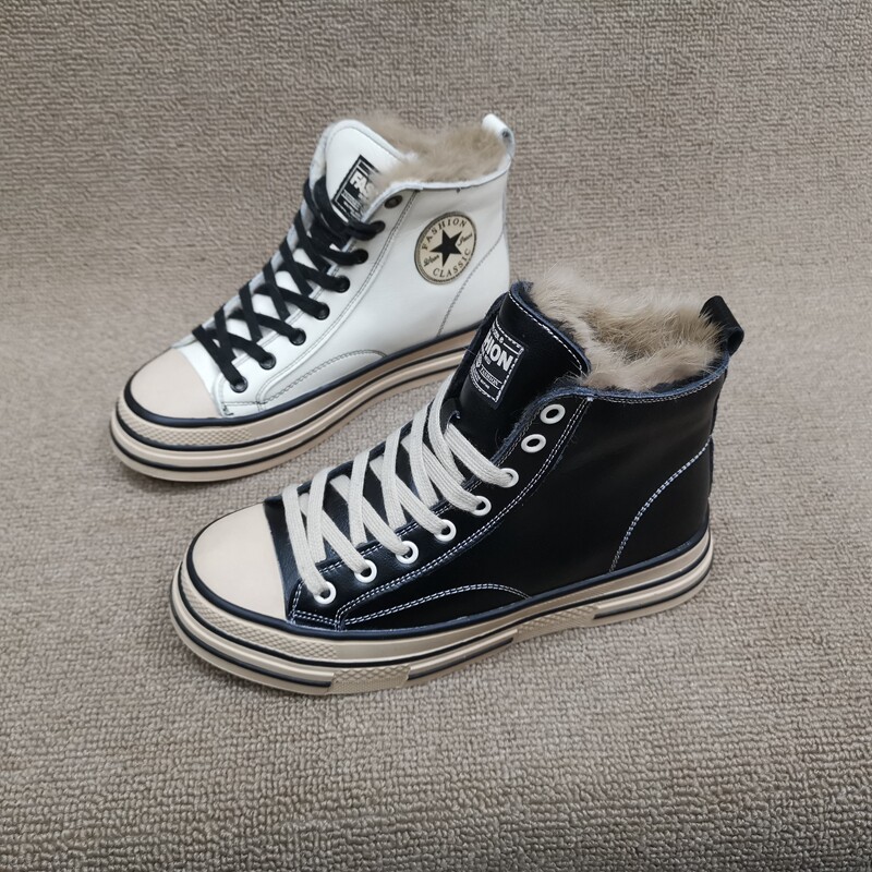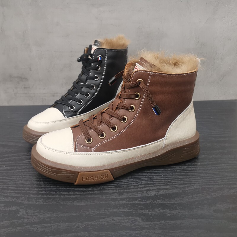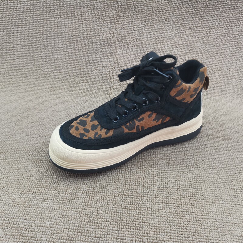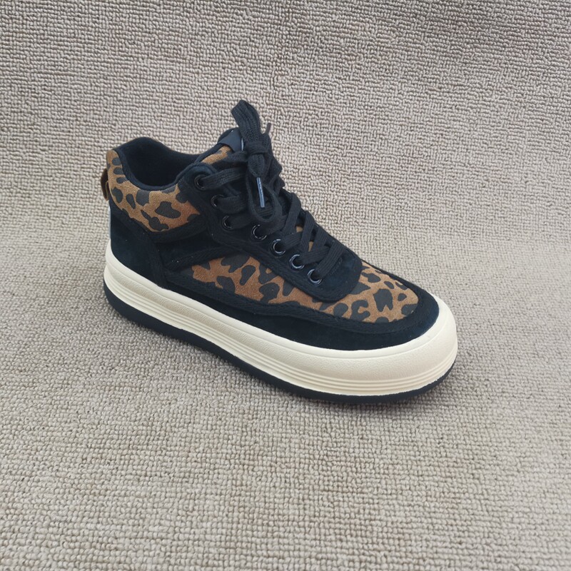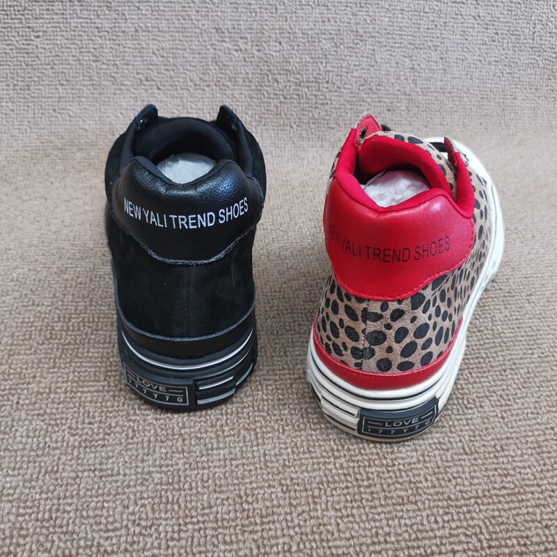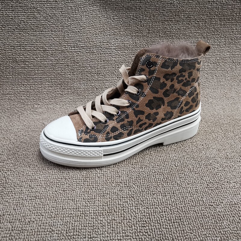 Pollo The Cabinet обработка скидка кожаная женская обувь 2021 зима новая мода Leopard Plus Velvet Casual Anti -Velvet High -Top Women's Womens