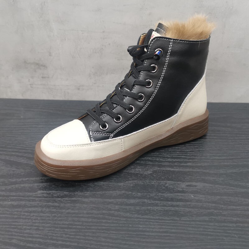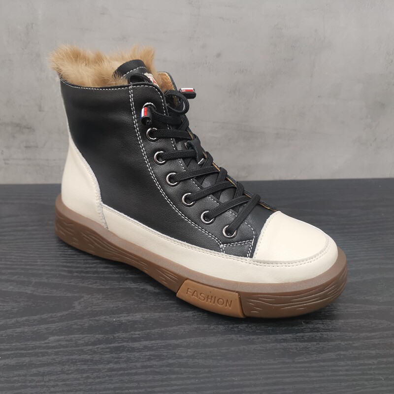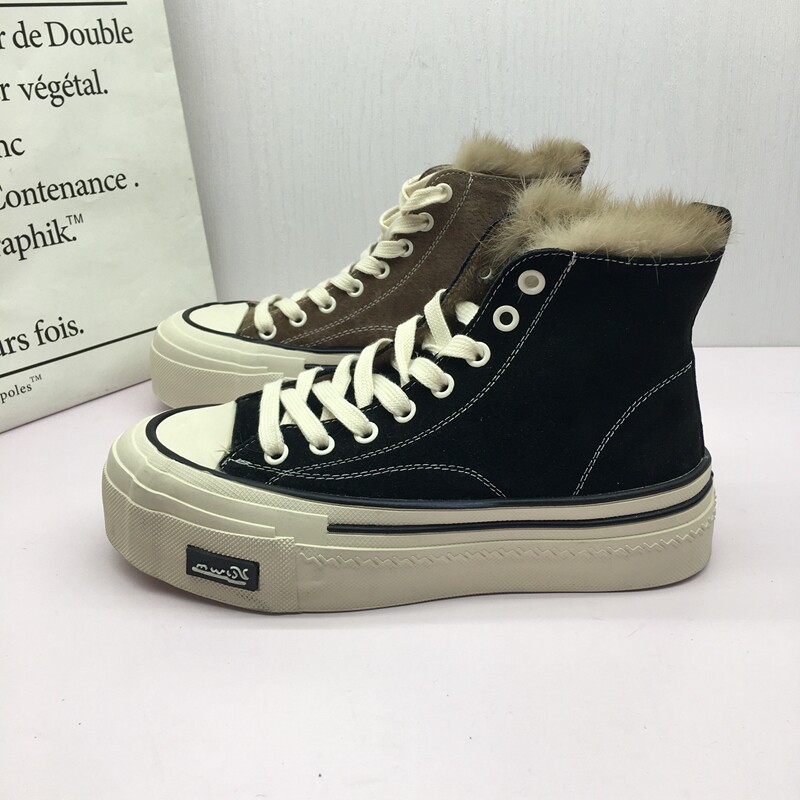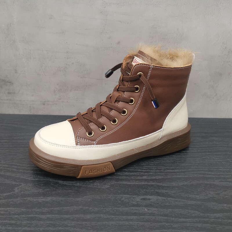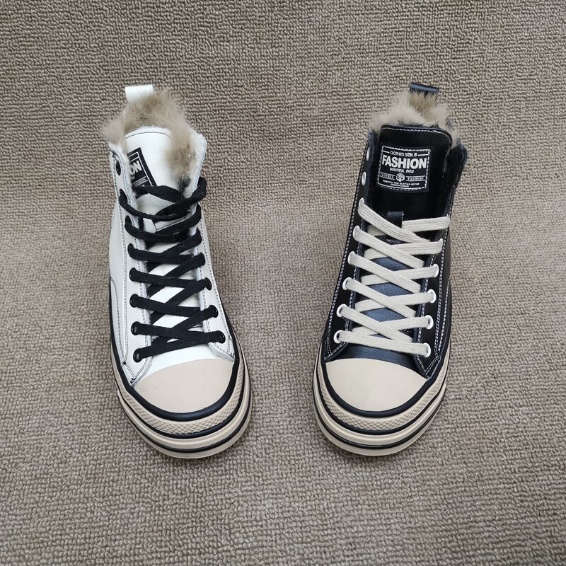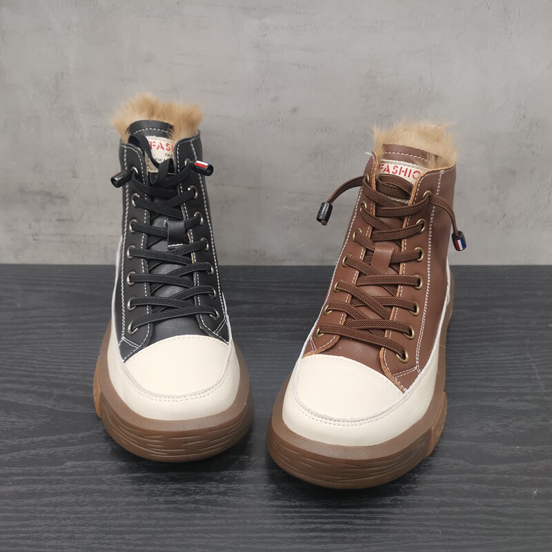 Pollo The Cabinet обработка скидка кожаная женская обувь 2021 зима новая мода Leopard Plus Velvet Casual Anti -Velvet High -Top Women's Womens
