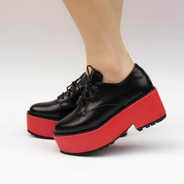 antaina Новые туфли на платформе в стиле Харадзюку на квадратном каблуке, туфли на толстой подошве, удлиняющие туфли, низкорослые туфли Lego на заказ, 9618