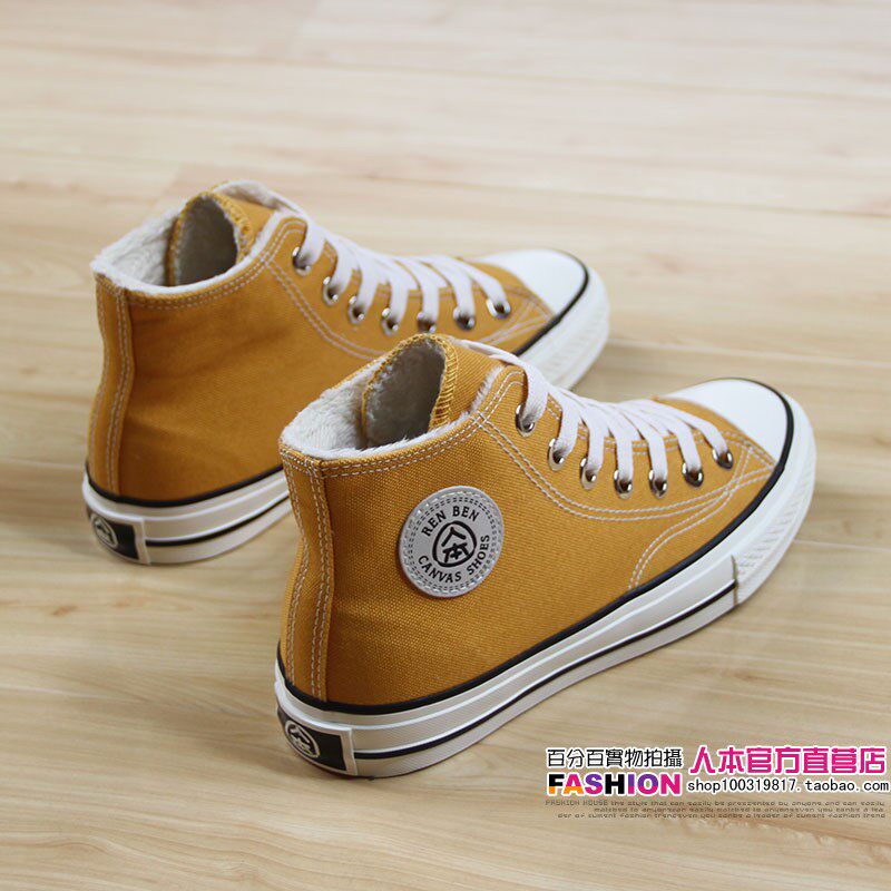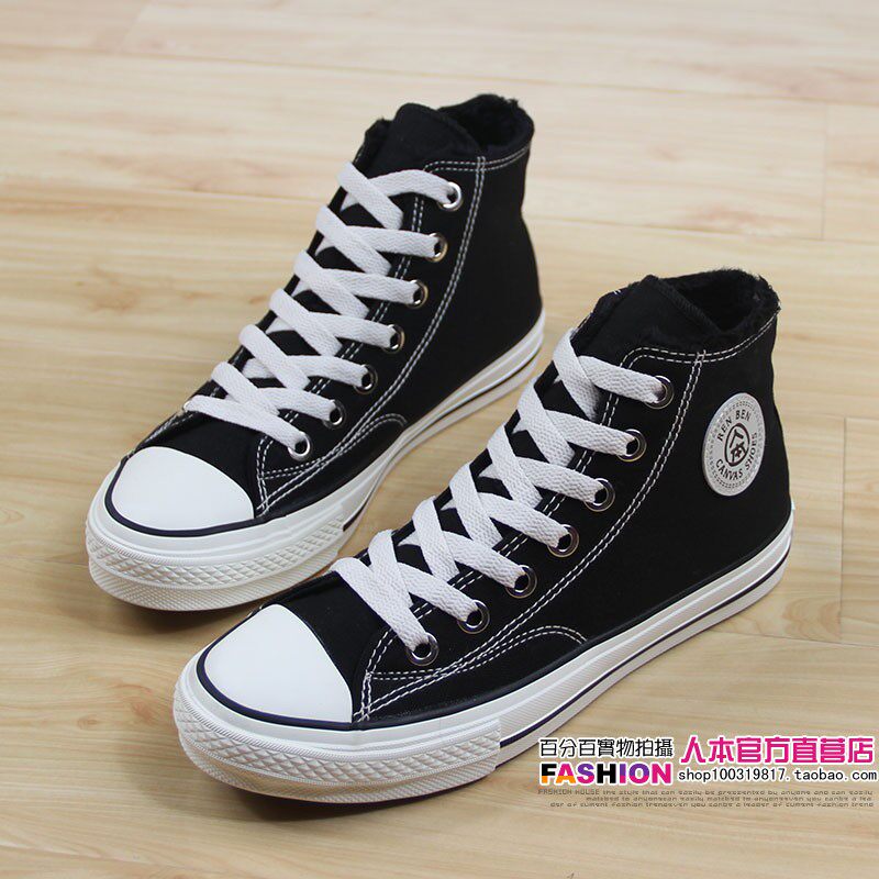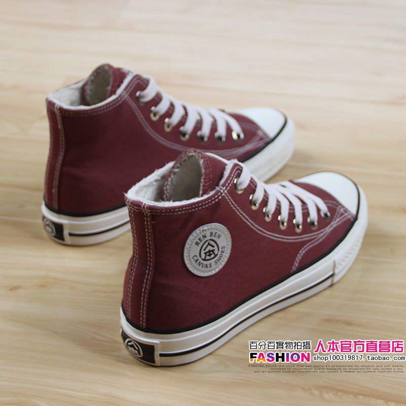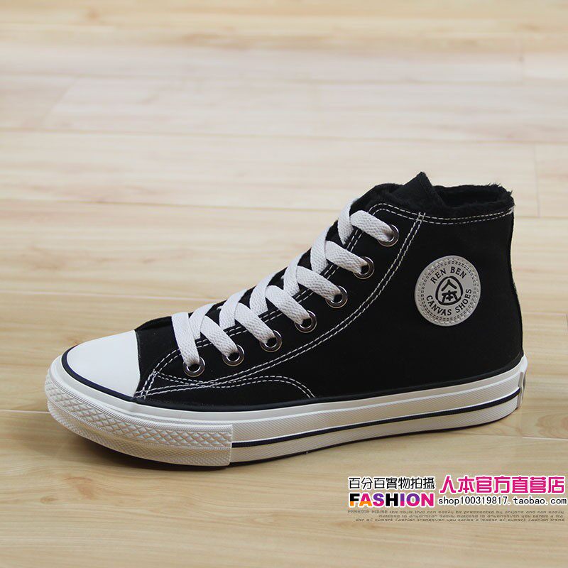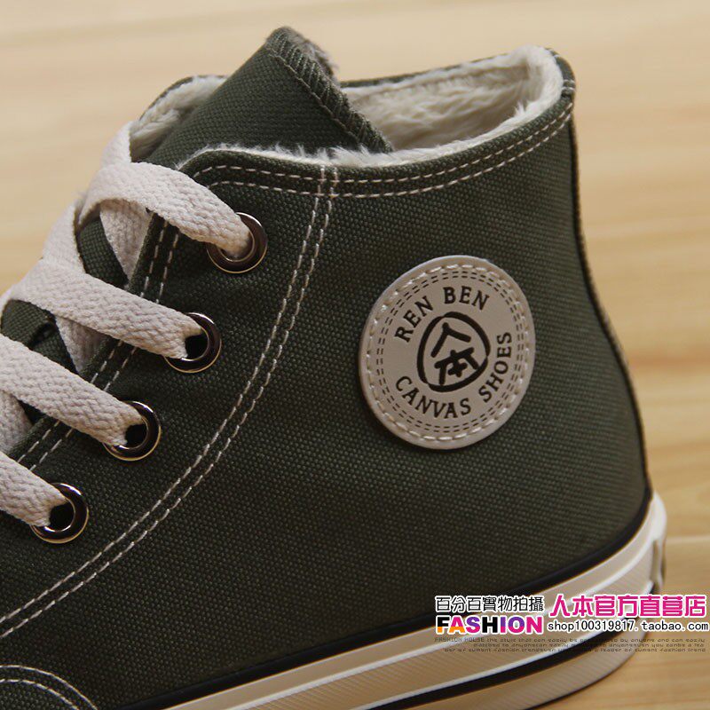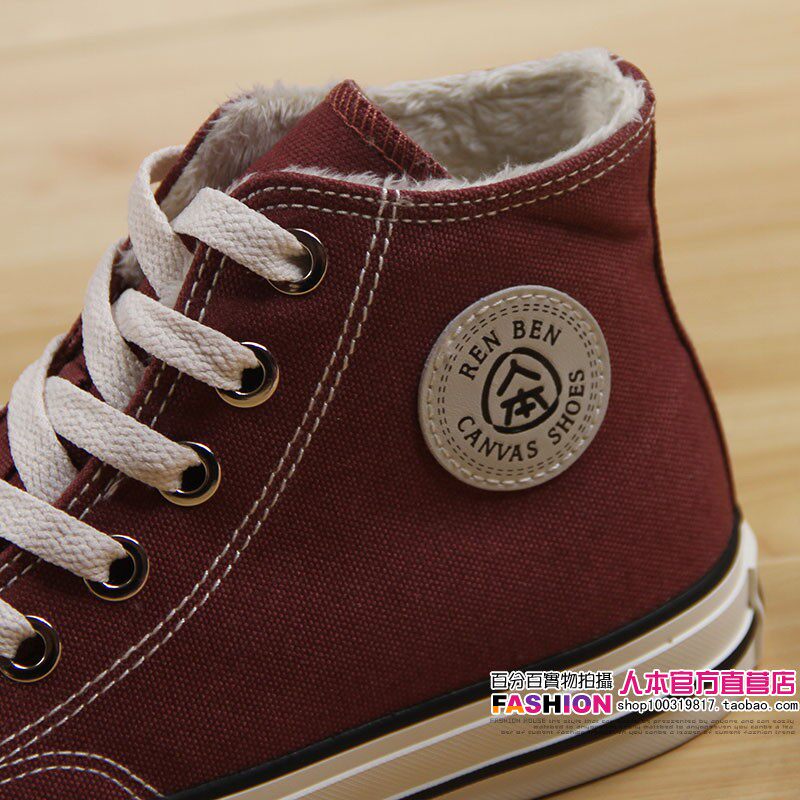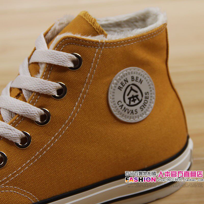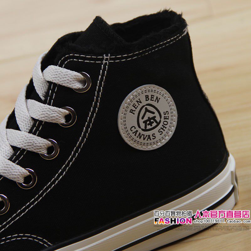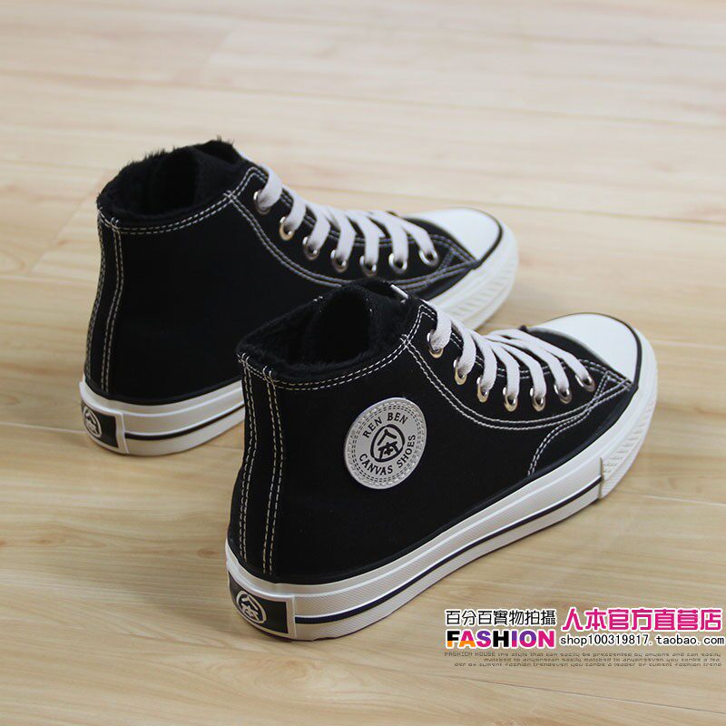 人本 Флисовая зимняя обувь, высокие сапоги для влюбленных, тканевые кроссовки, в корейском стиле