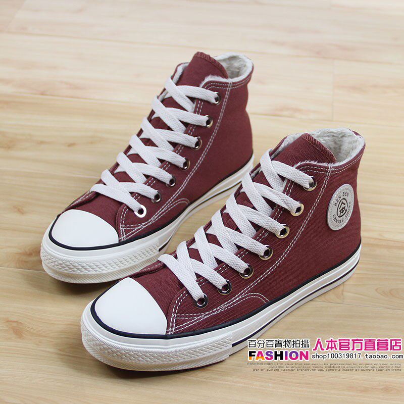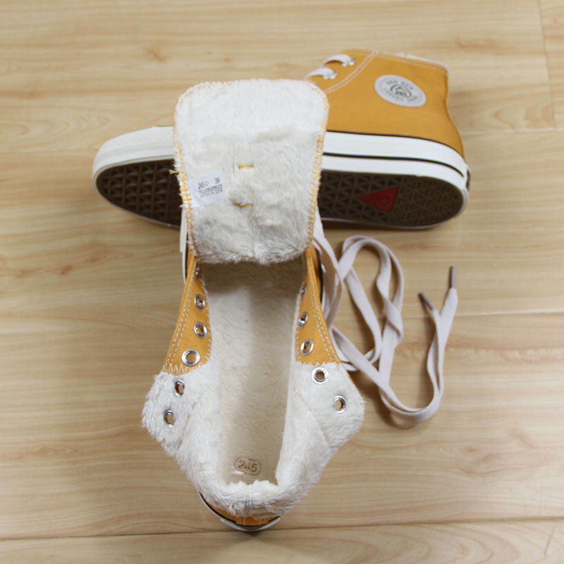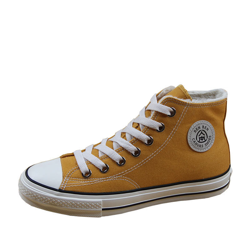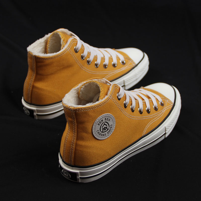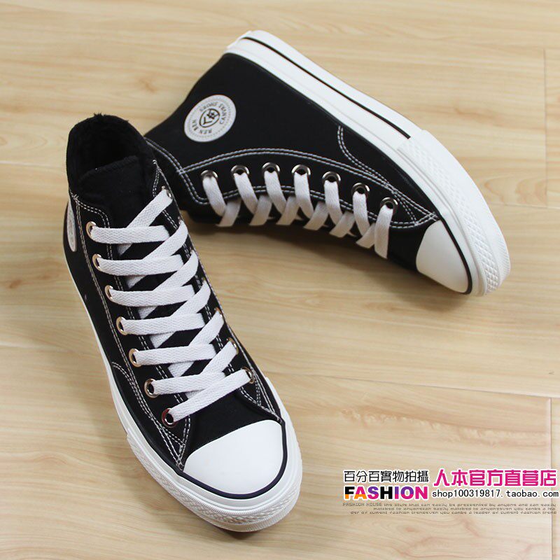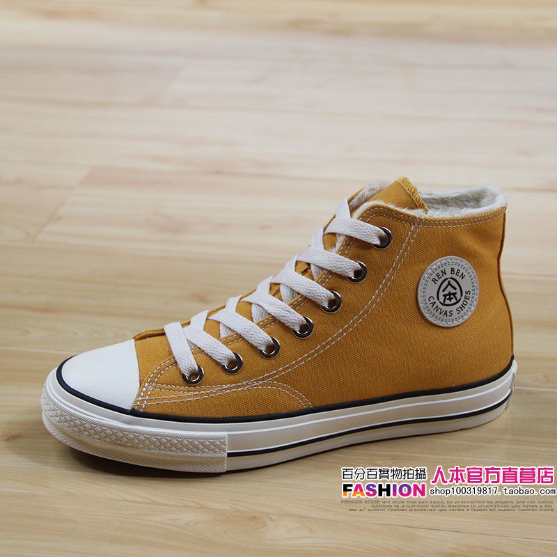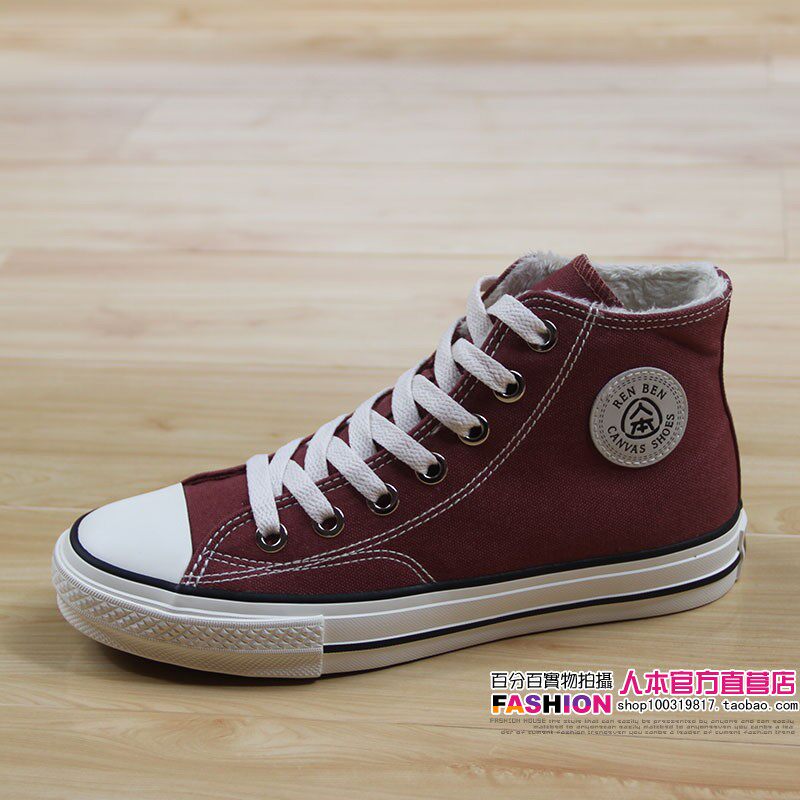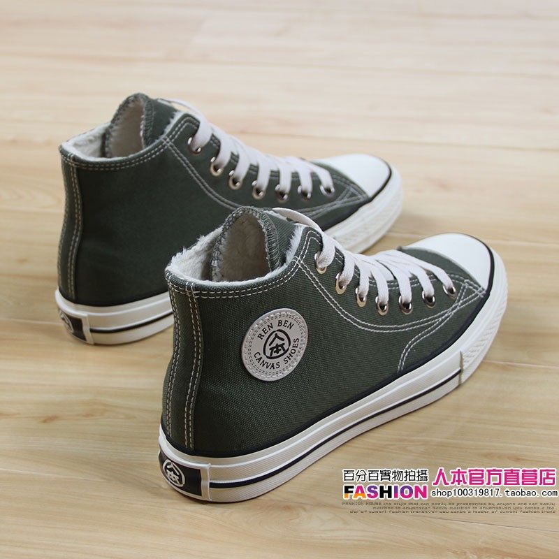 人本 Флисовая зимняя обувь, высокие сапоги для влюбленных, тканевые кроссовки, в корейском стиле