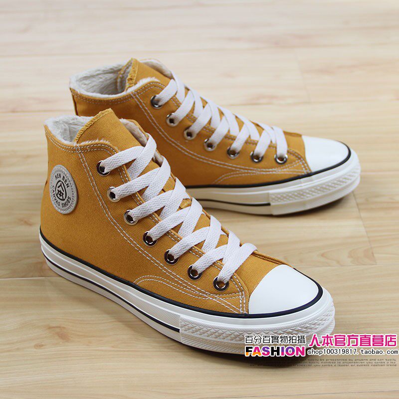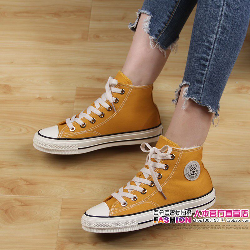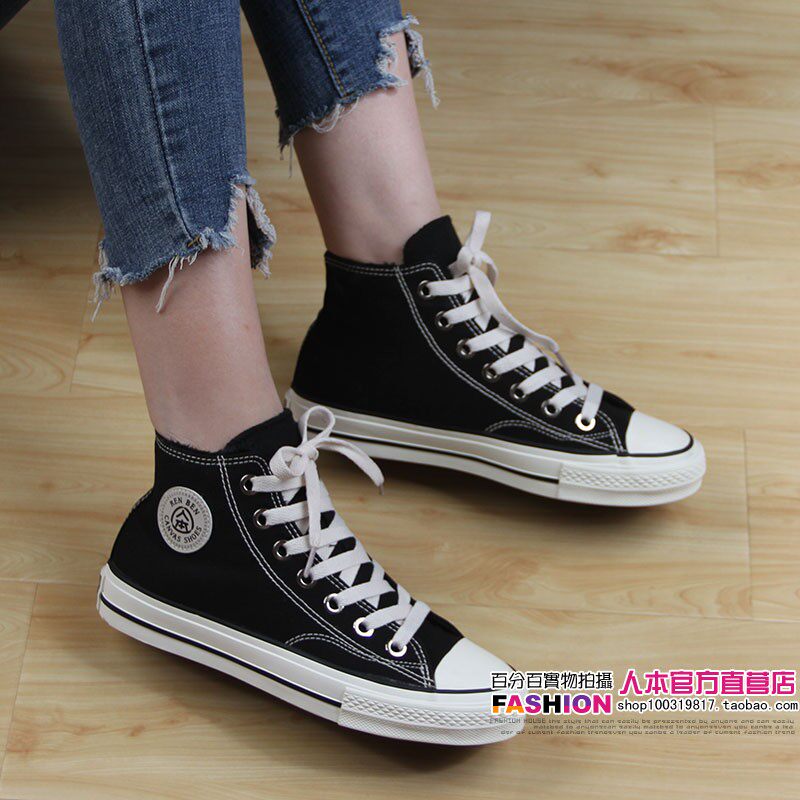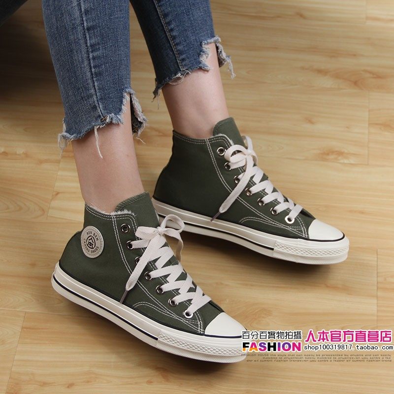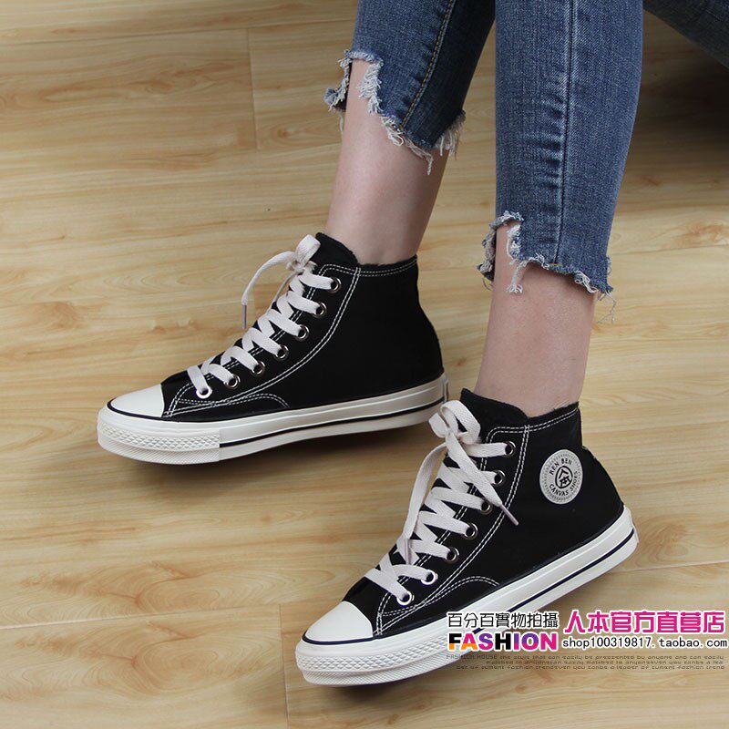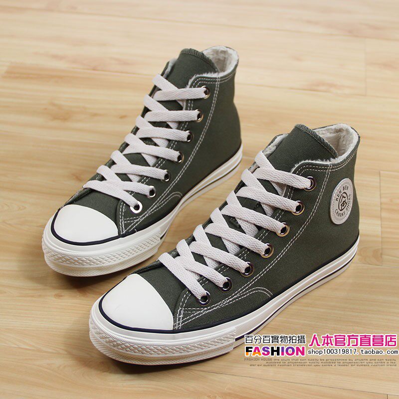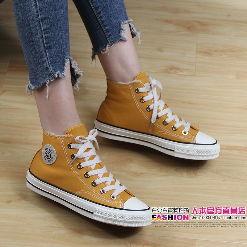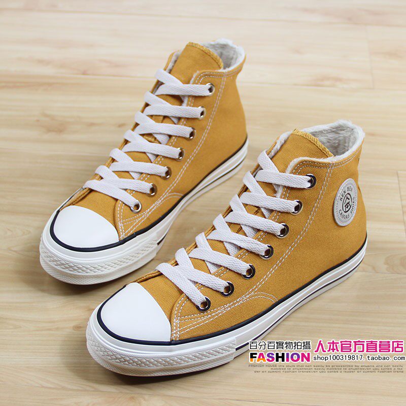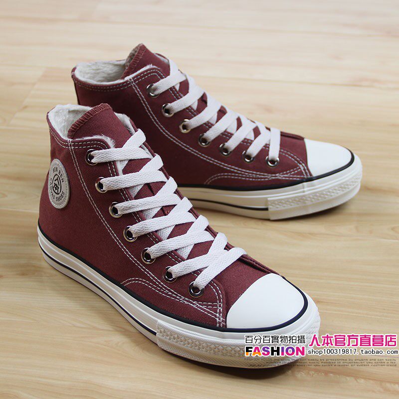 人本 Флисовая зимняя обувь, высокие сапоги для влюбленных, тканевые кроссовки, в корейском стиле