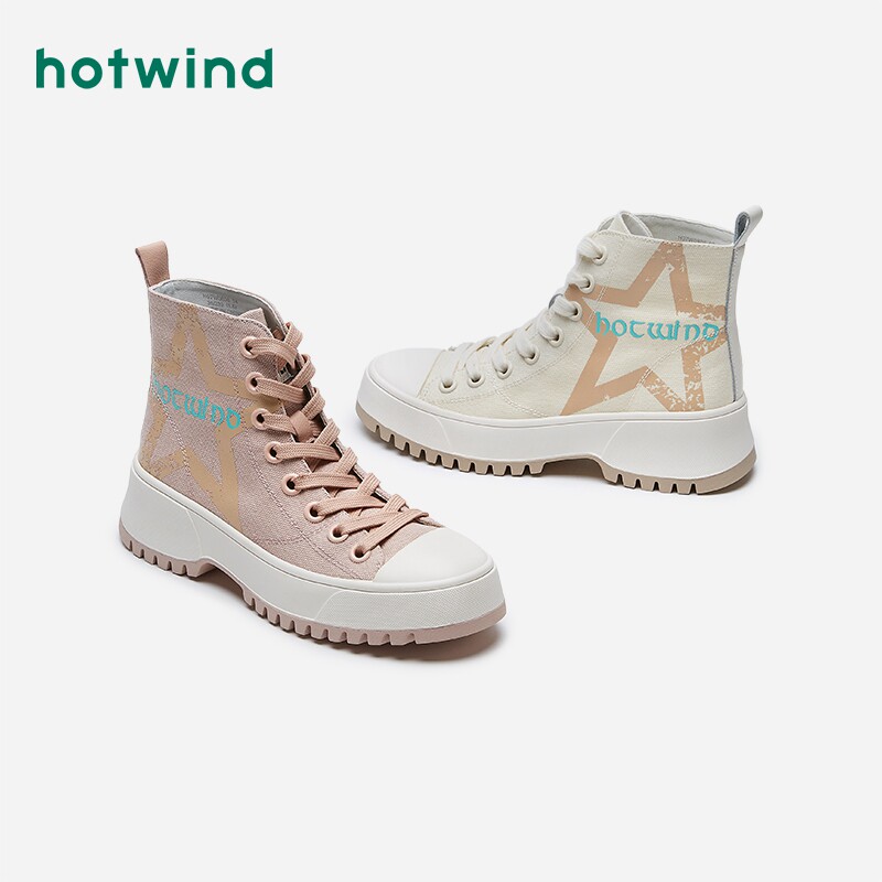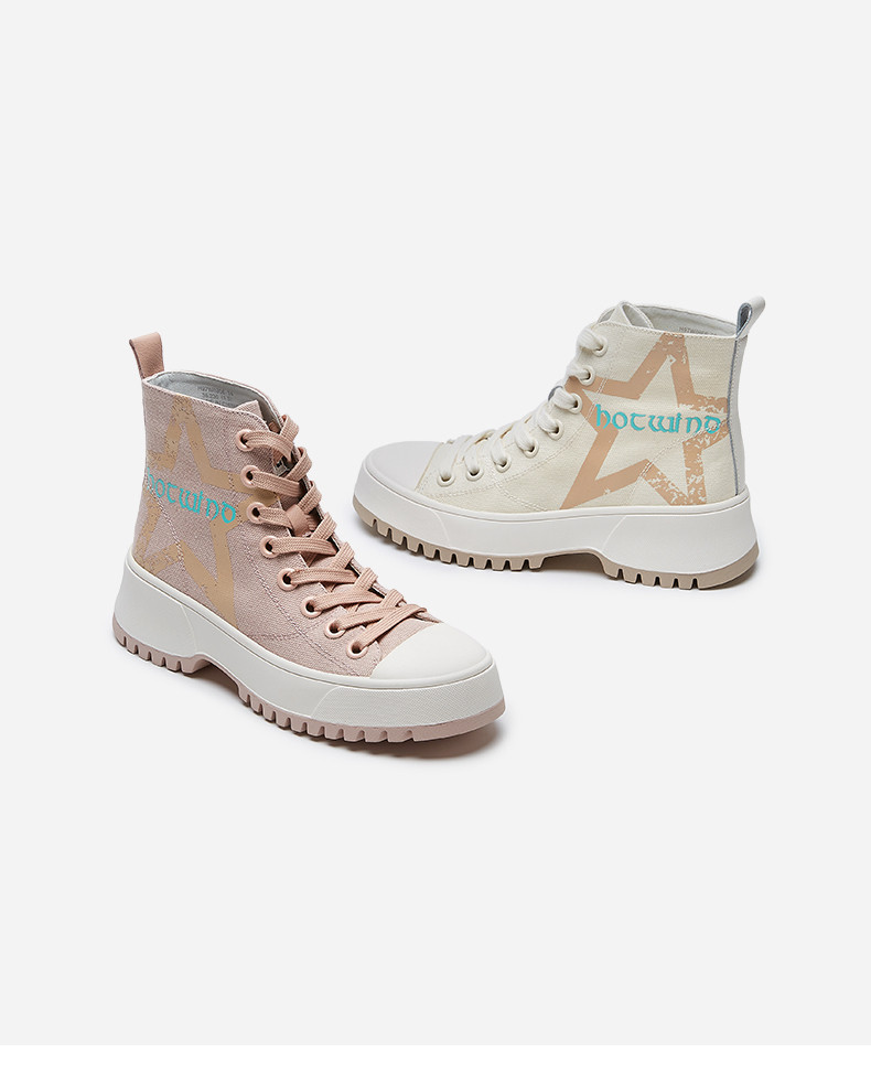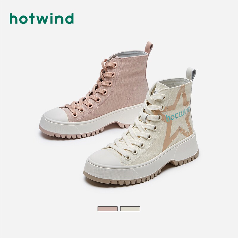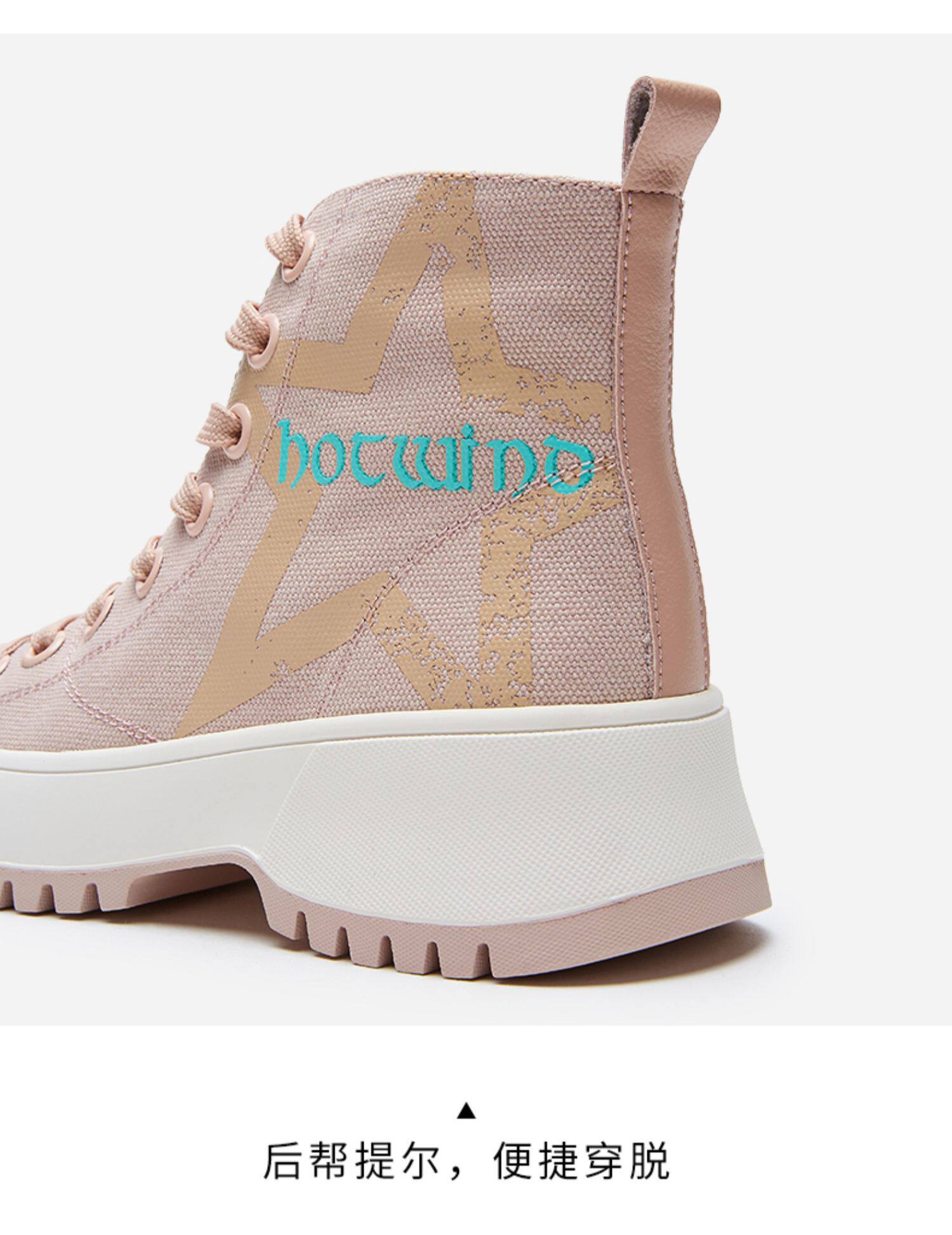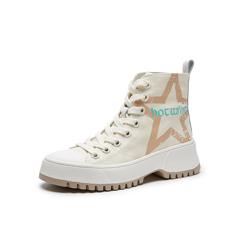 Женские парусиновые туфли с высоким берцем и толстой подошвой Hot Wind, трендовые ulzzang, универсальные корейские версии, осенние и зимние новые кроссовки в студенческом стиле