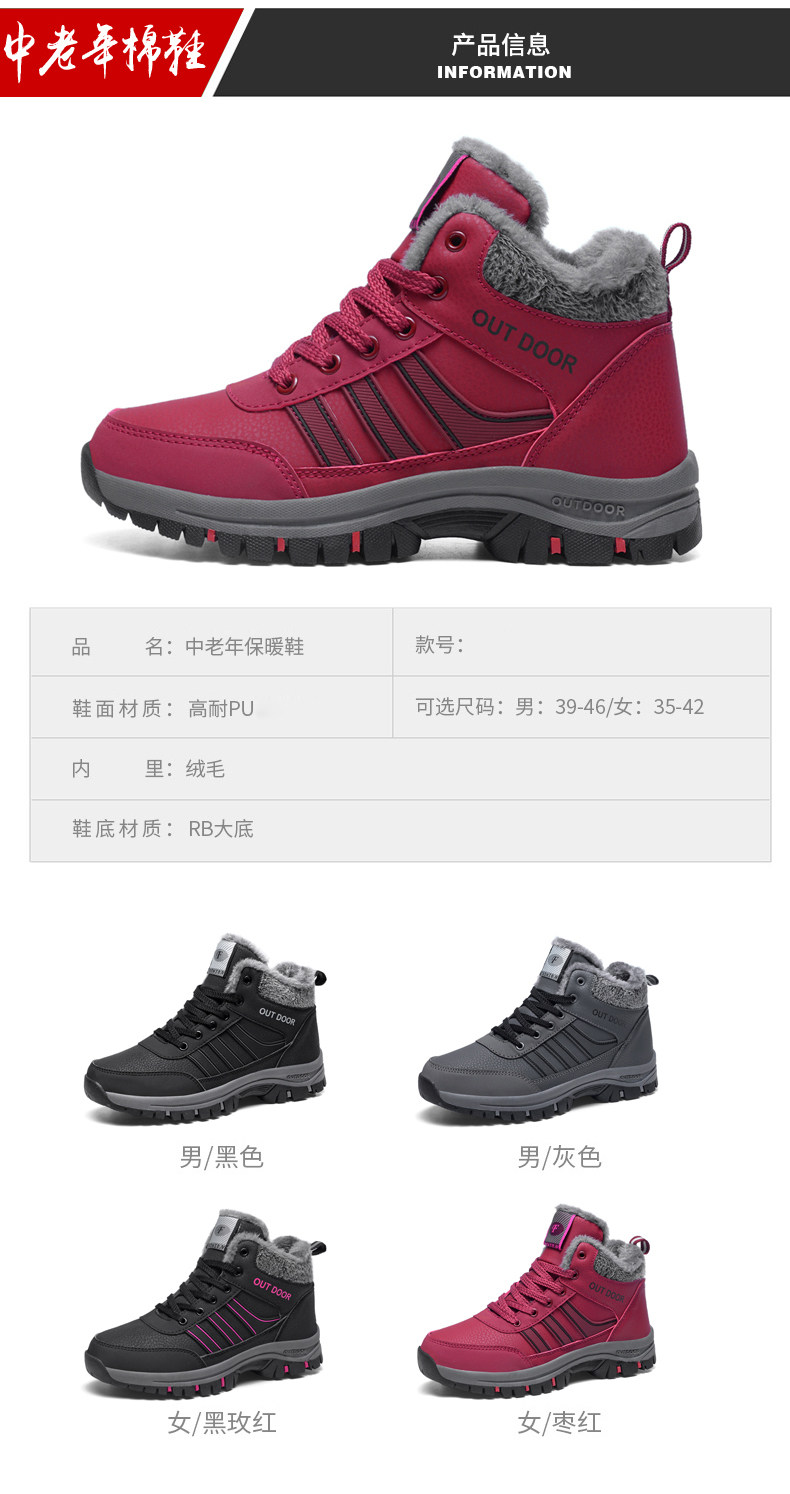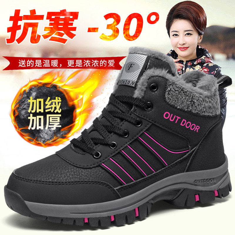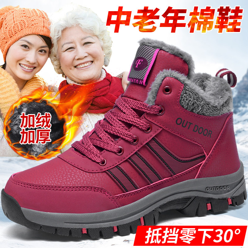 Зимняя женская обувь большого размера, хлопчатобумажная обувь, бархат, утепленная, теплая обувь для пожилых людей, отдых на природе, женская обувь для мам среднего и пожилого возраста.