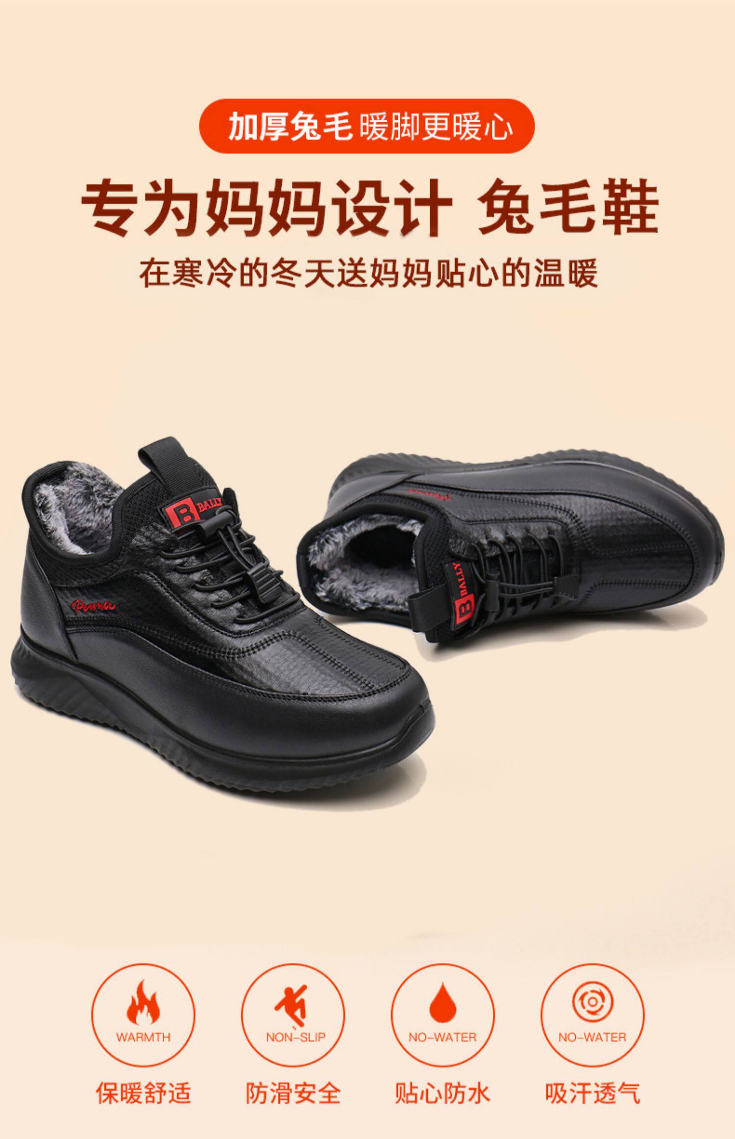 Нескользящая зимняя флисовая удерживающая тепло повседневная обувь для матери, для среднего возраста