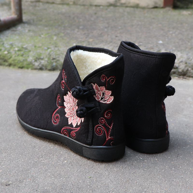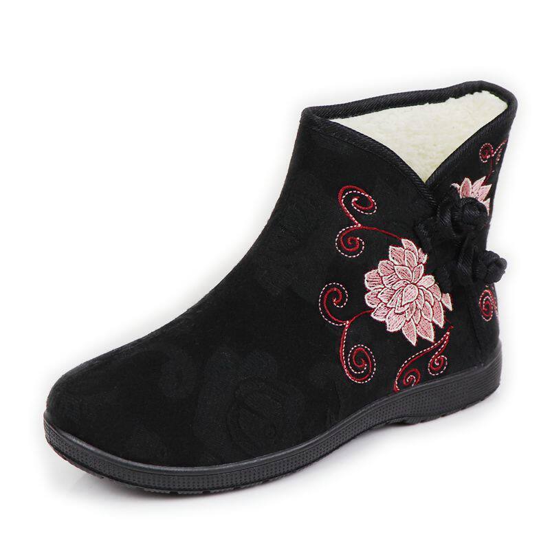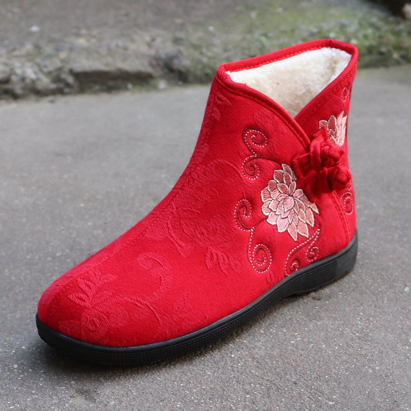 Демисезонные флисовые удерживающие тепло нескользящие этнические высокие слипоны для матери, мягкая подошва, этнический стиль