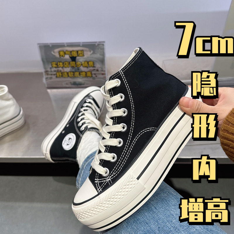 Маленькие парусиновые туфли на невидимом внутреннем каблуке толщиной 7 см на толстой подошве, модные женские туфли с высоким берцем на шнуровке, дышащие белые туфли