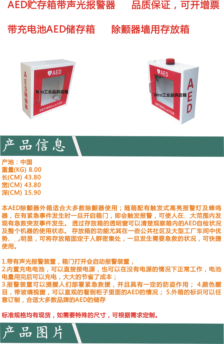 Настенный ящик для хранения дефибриллятора AED, звуковая и световая сигнализация, Настенный ящик для хранения AED, внешний ящик AED, металлический ящик