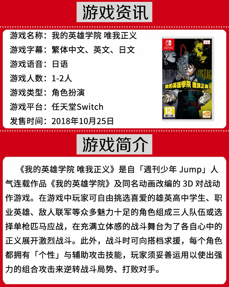 Nintendo Switch NS Game My Hero Academy Academy в китайской версии места