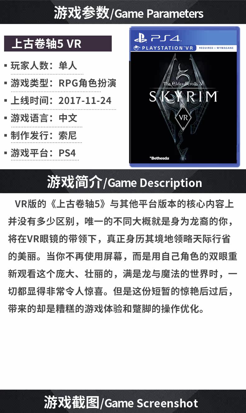 Sony PS4 VR Game Древняя прокрутка VR версия Skyrim Rolling 5 китайская версия Spot