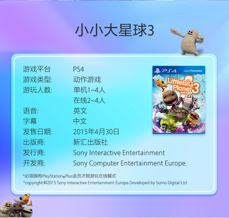 PS4 игра Little Planet 3 LittleBigPlanet3 поддерживает 1-4 человека китайское место