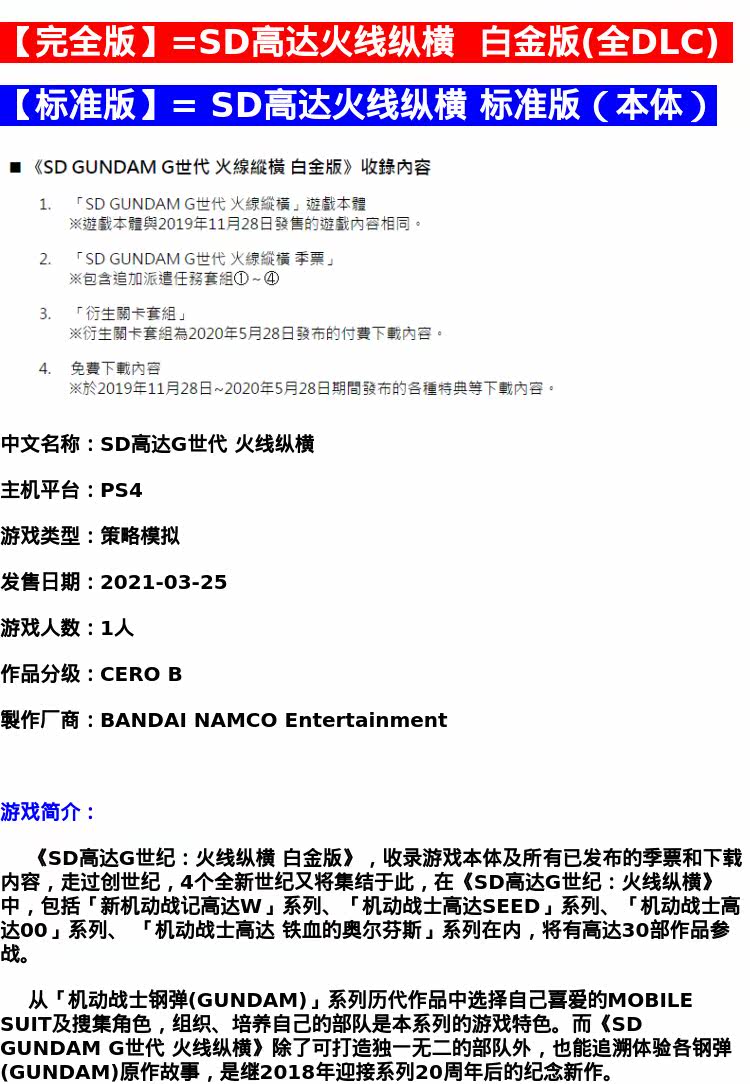 Спосоковые товары!PS4 Game Sd Gundam G Century Fire Ventures Platinum Версия G Генерация огненной китайской версии Новая подлинная полная версия = платиновая версия