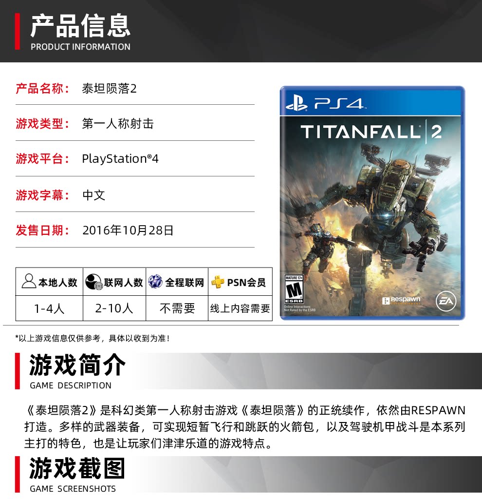 [Китайское место] Sony PS4 Game CD Titan Fall 2 Titan Sky 2 Titanfall2