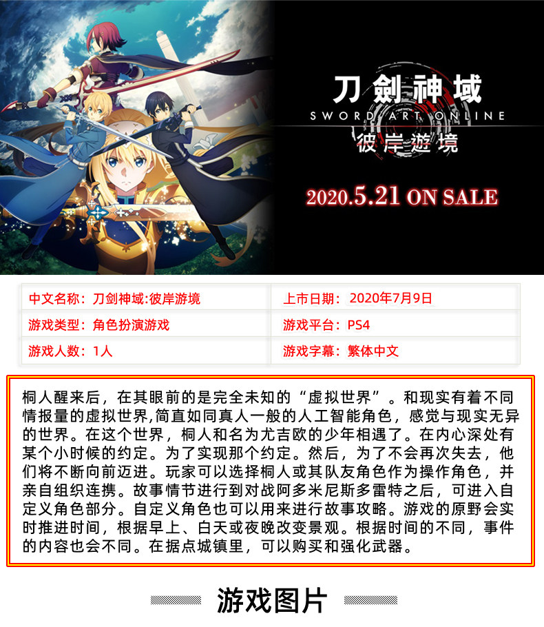 «Sword Art Online: тур на другой стороне» китайская игра PS4