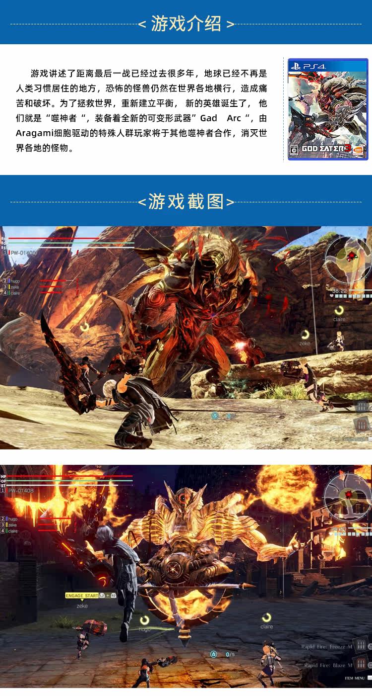 Sony PS4 Game CD -ROMS 3 God Eater 3 Китайская версия Spot Spot