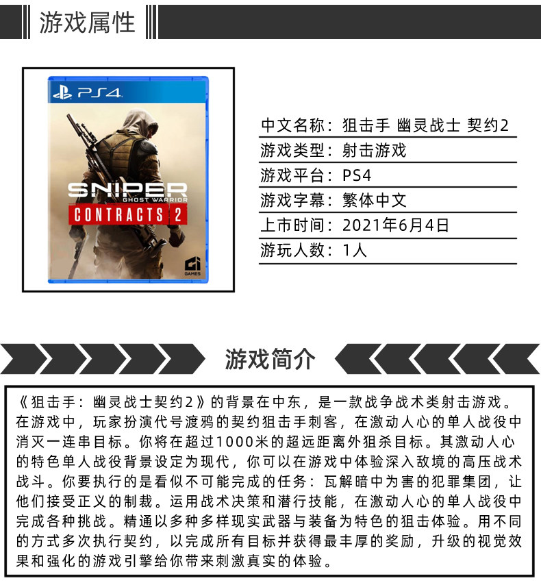Новый PS4 Game Game Grast Warrior Contract 2 Contract King Sniper 2 Китайский место